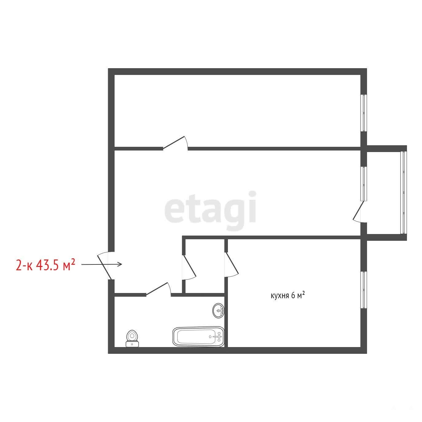 Продается просторная 2-х ком. с площадью 43, 3м2.