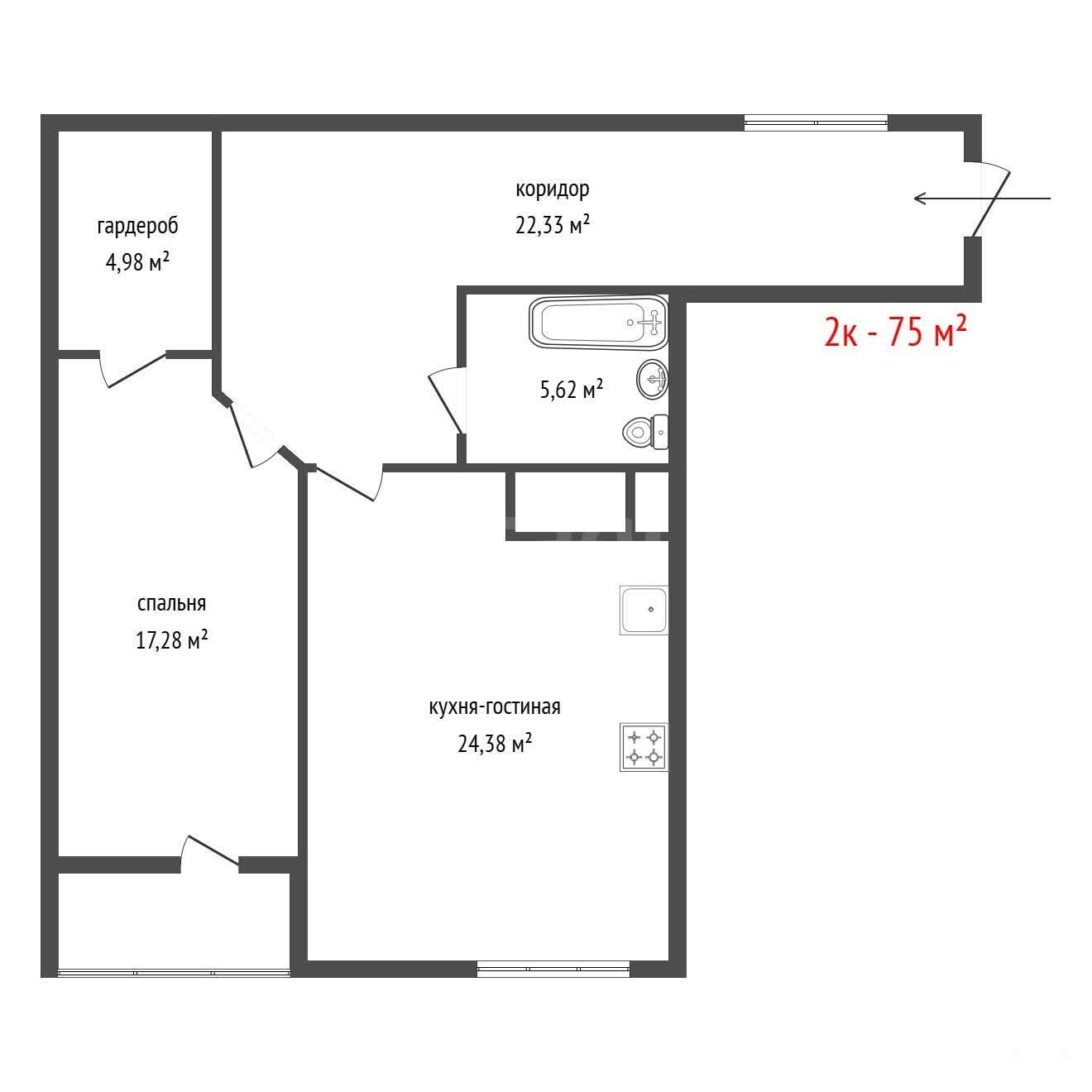 - 75 м²