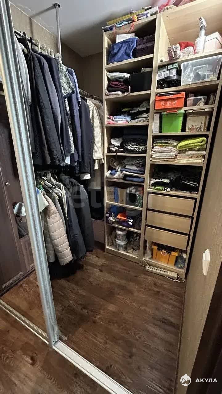 Для комфортного хранения вещей обустроена гардеробная. В гостиной предусмотрена техническая возможность для организации домашнего кинотеатра — выведены необходимые коммуникации, также остается проекционный экран.