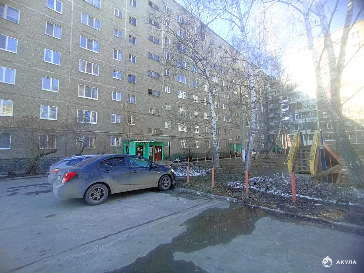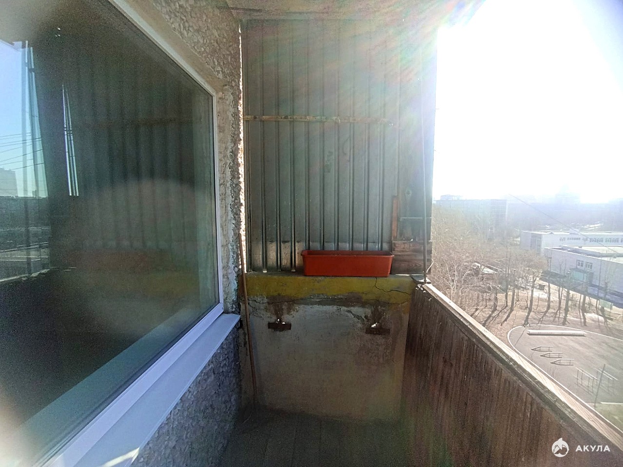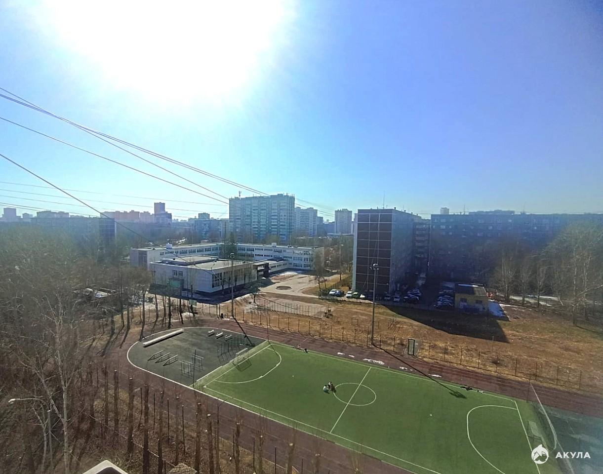 Последний этаж — топ-фишка: никаких топающих "носорогов" сверху. Вид на школьное футбольное поле — кофе в руках, голы в сердце, болей за своих как профи!