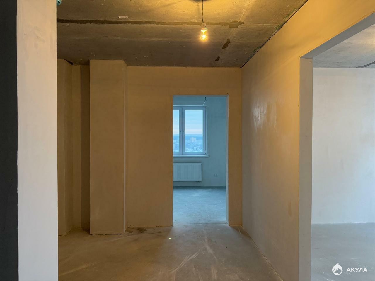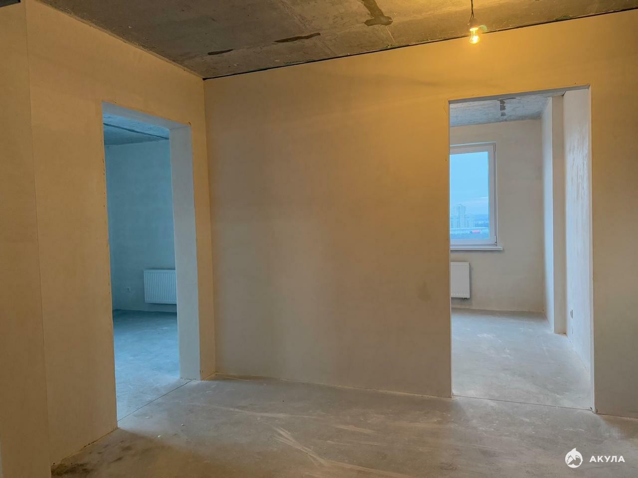 отделка под чистовуюКлассная планировка с большой прихожей и кухней-гостиной, две отдельные спальни.