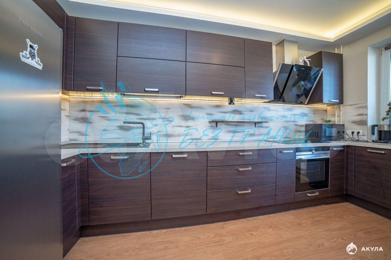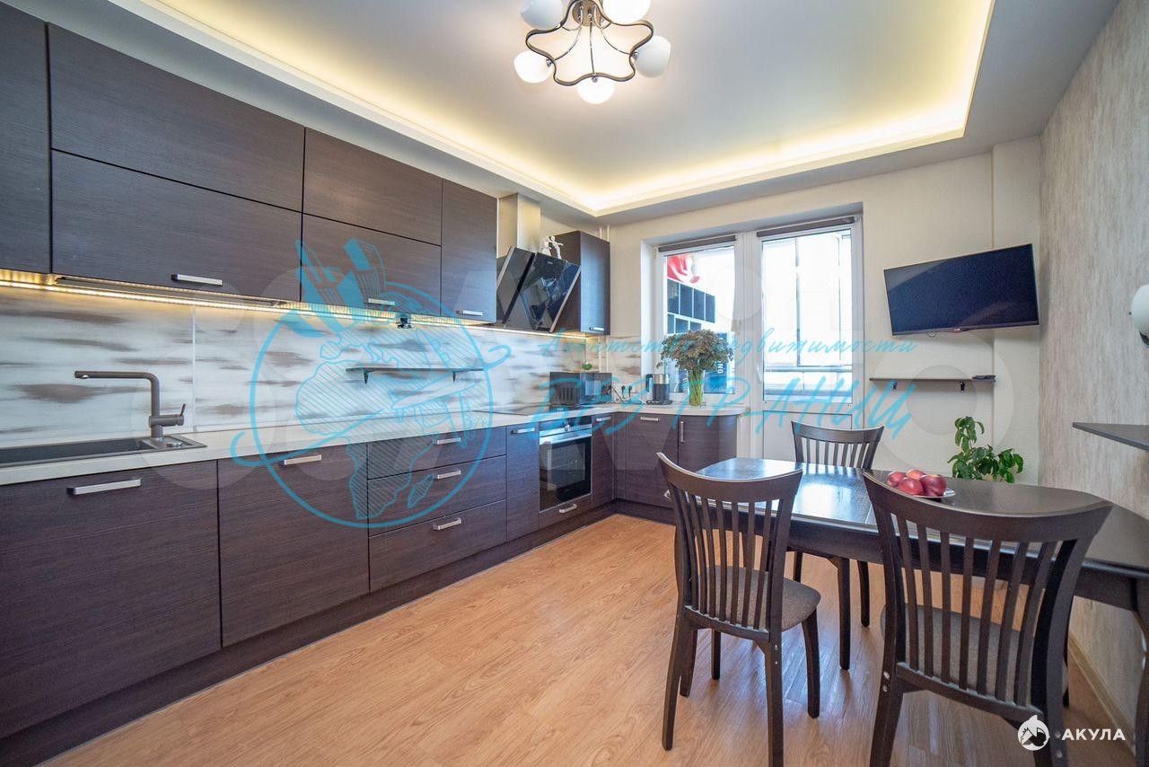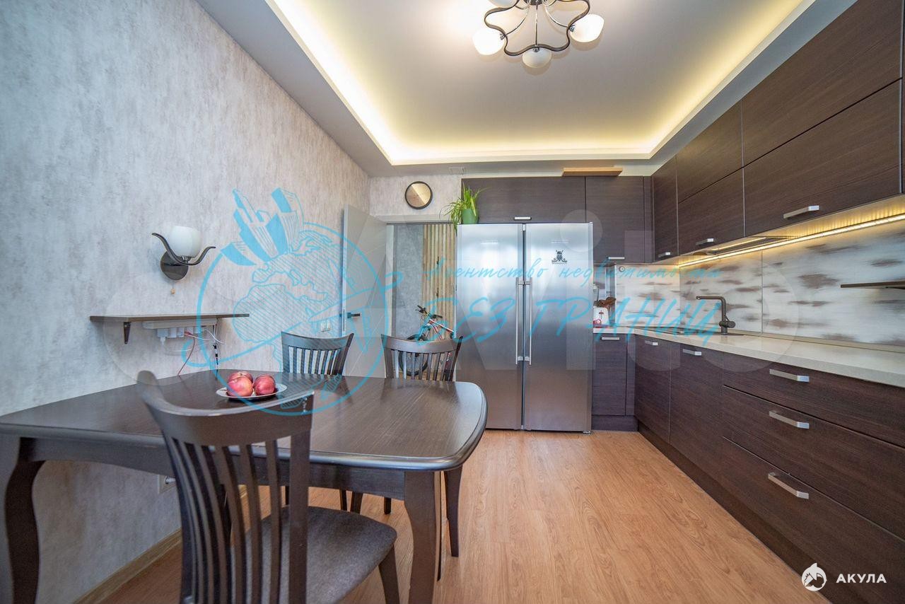 Квартира полностью оборудована "заезжай и живи": вместительный шкаф-купе, два шкафа в спальнях, кухня со встроенной техникой и столом, телевизором; в детской стол и шкафчики, кровати и стулья; в сан.узле. шикарный ремонт, качественная сантехника новая душевая кабина, шкафчик, водонагреватель и стиральная машина.