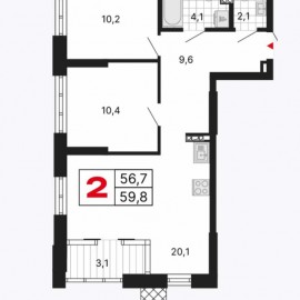 Квартира в новом доме ЖК Встречный О квартире: - Просторная кухня-гостиная с выходом на лоджию; - Две светлые комнаты; - Коридор с местом под шкаф-купе Удобная планировка для комфортного проживания. Жилой комплекс комфорт класса: - 7 квартир на этаже; - Подземный...