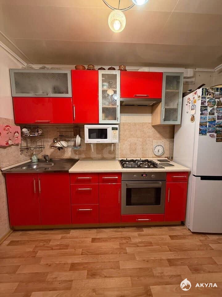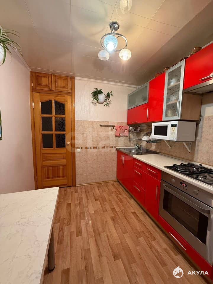 В квартире остается кухонный гарнитур, варочная панель, диван и водонагреватель.