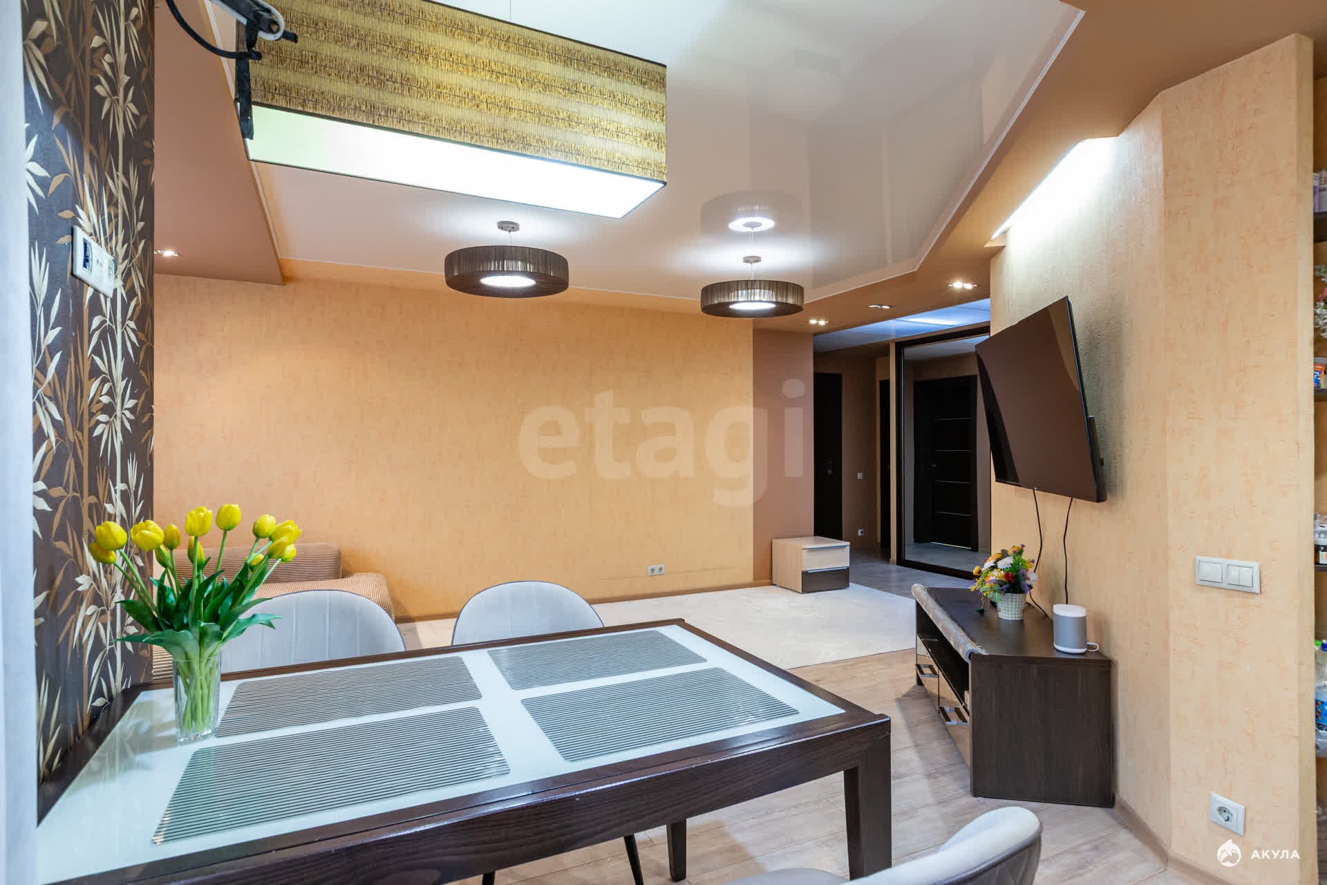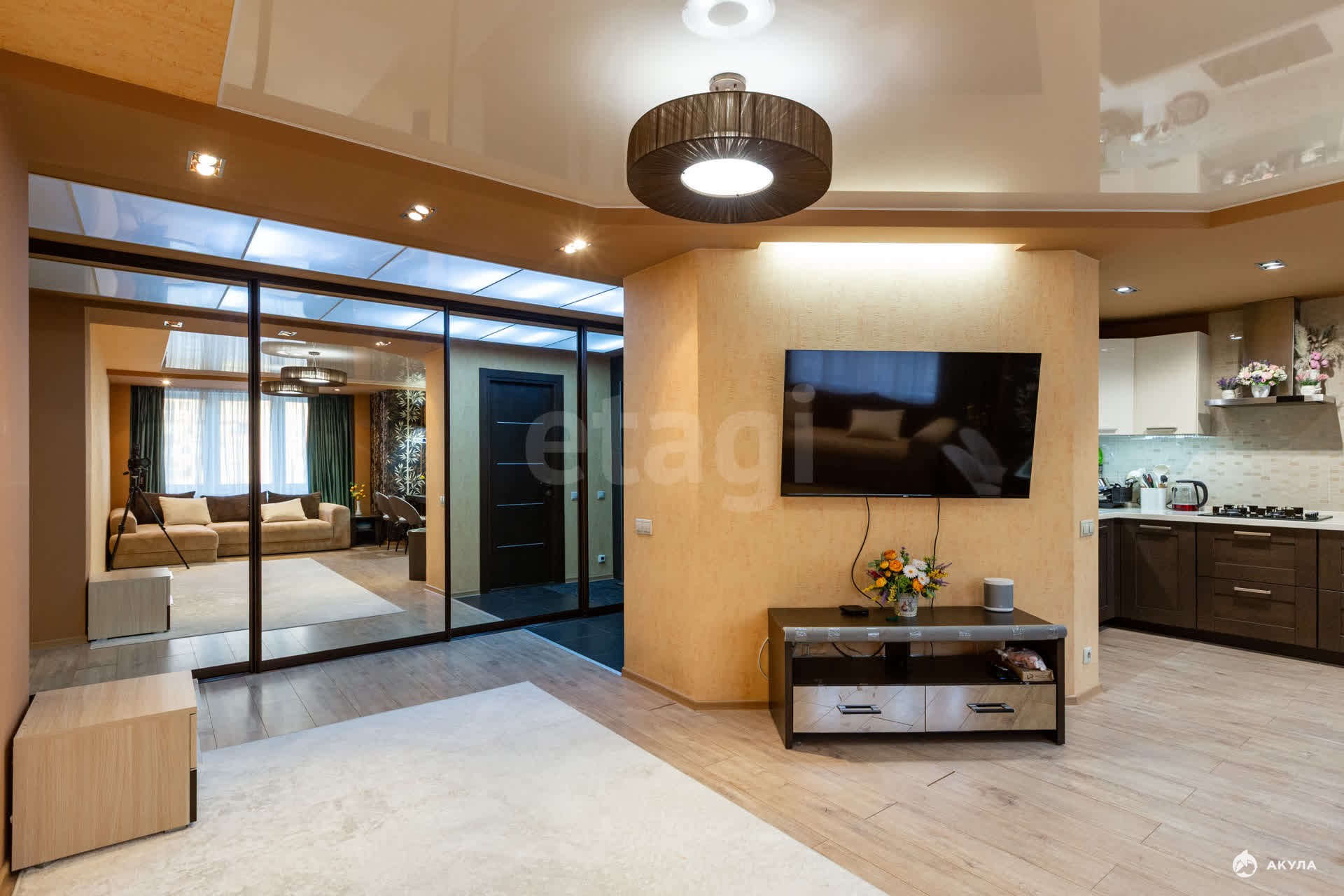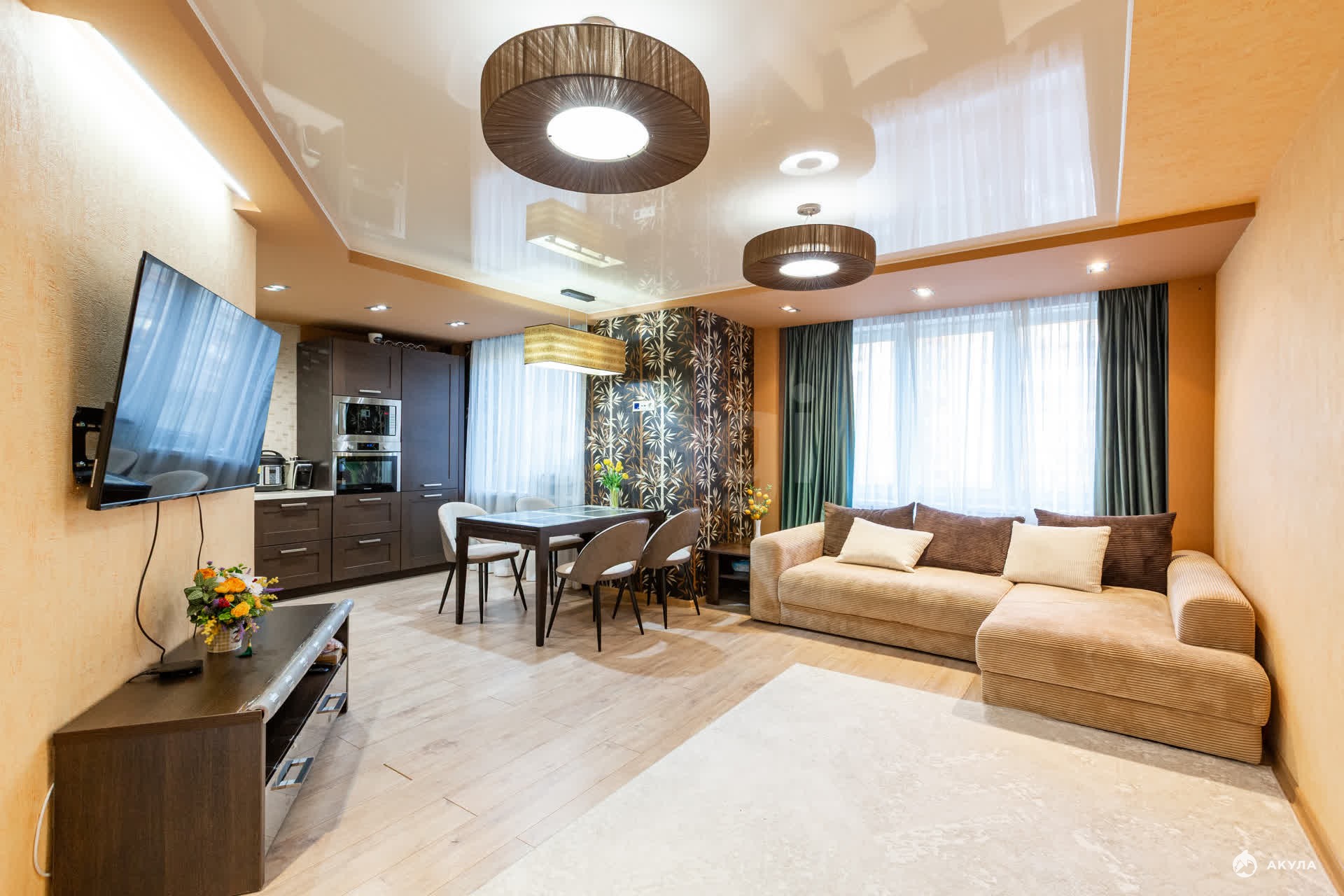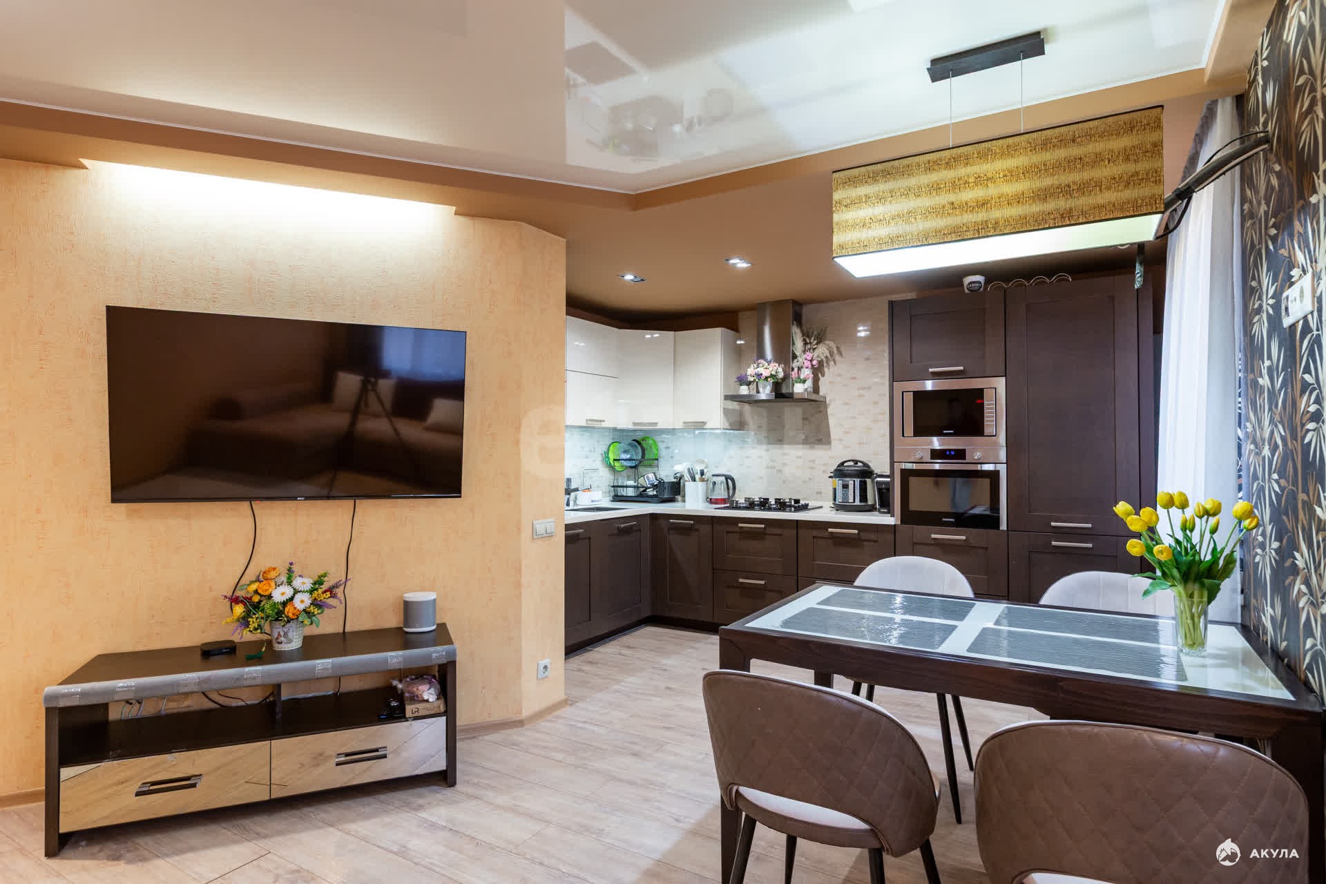 В квартире сделан ремонт, очень много световых приборов. В квартире останется: кухонный гарнитур, встроенные шкафы, остальная мебель по договоренности.