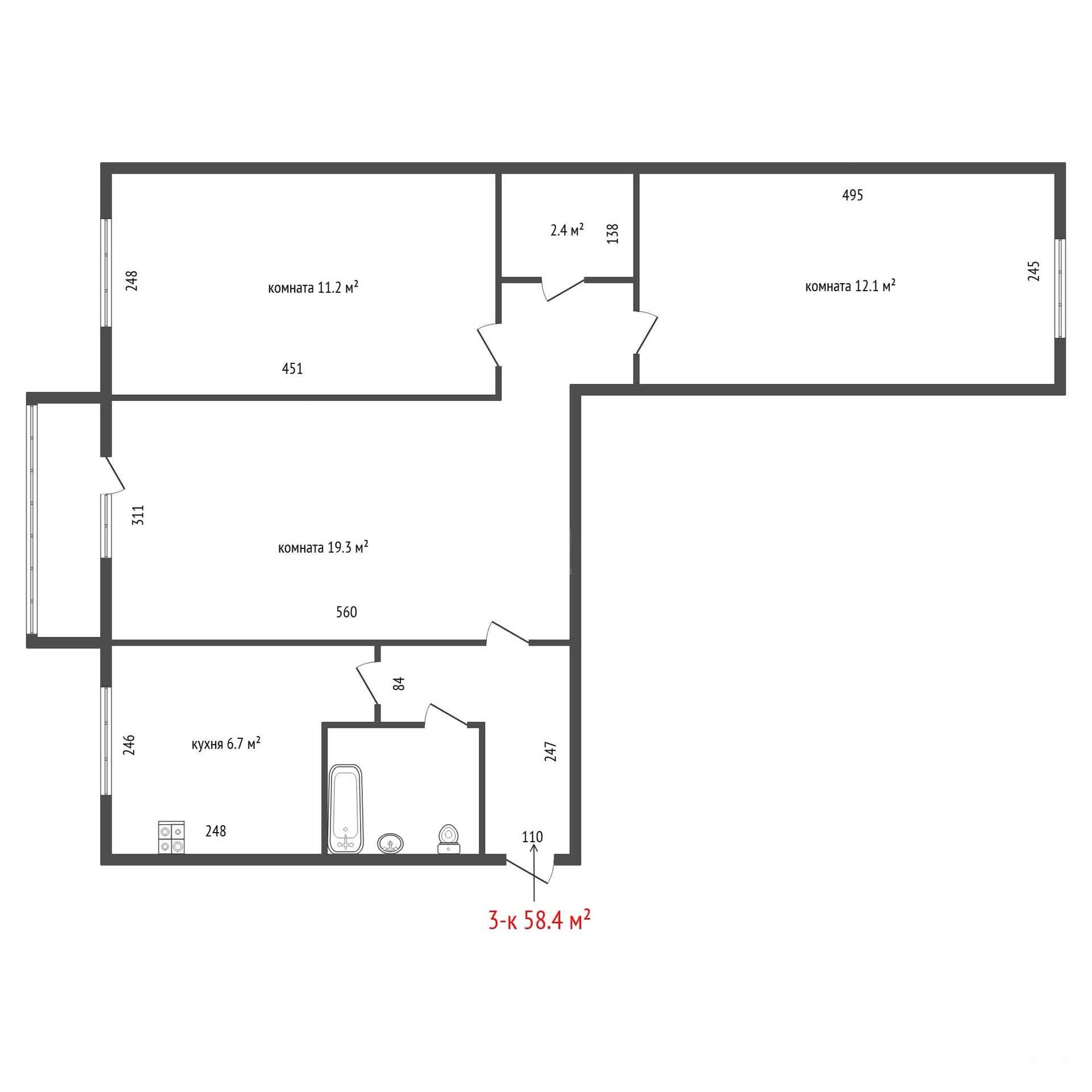 - 58 м²