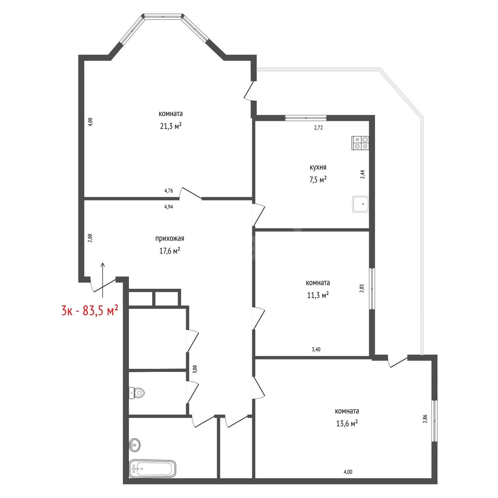 Большая гостиная с эркером, изолированные комнаты, большая лоджия с двумя входами, изолированный санузел.