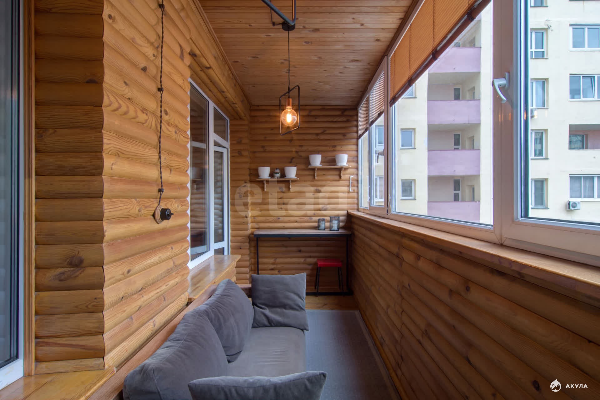Лоджия застеклен, под дерево.