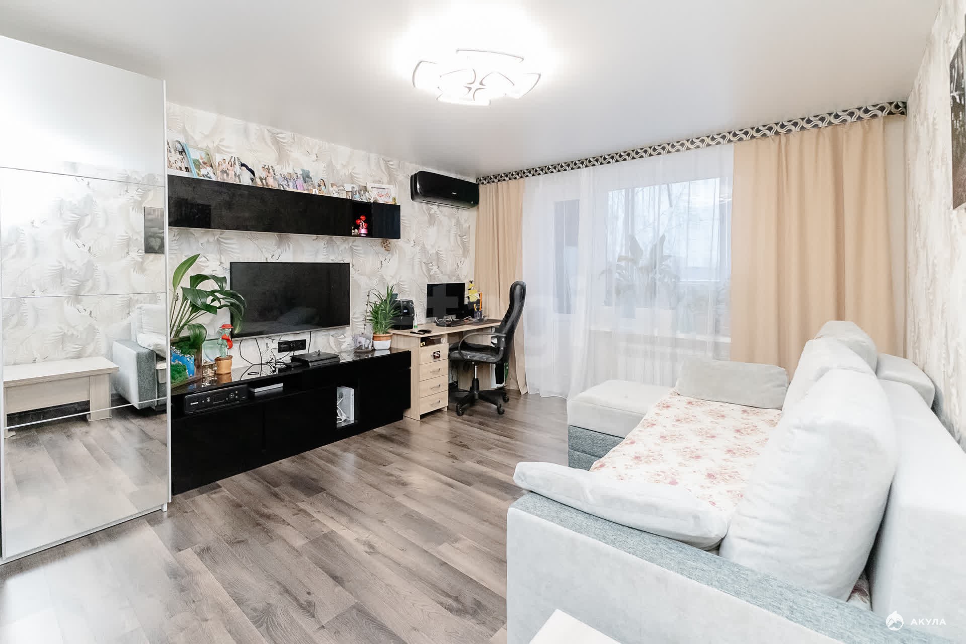 В квартире установлен кондиционер, лоджия застеклена и может быть функционально использована в любое время года.