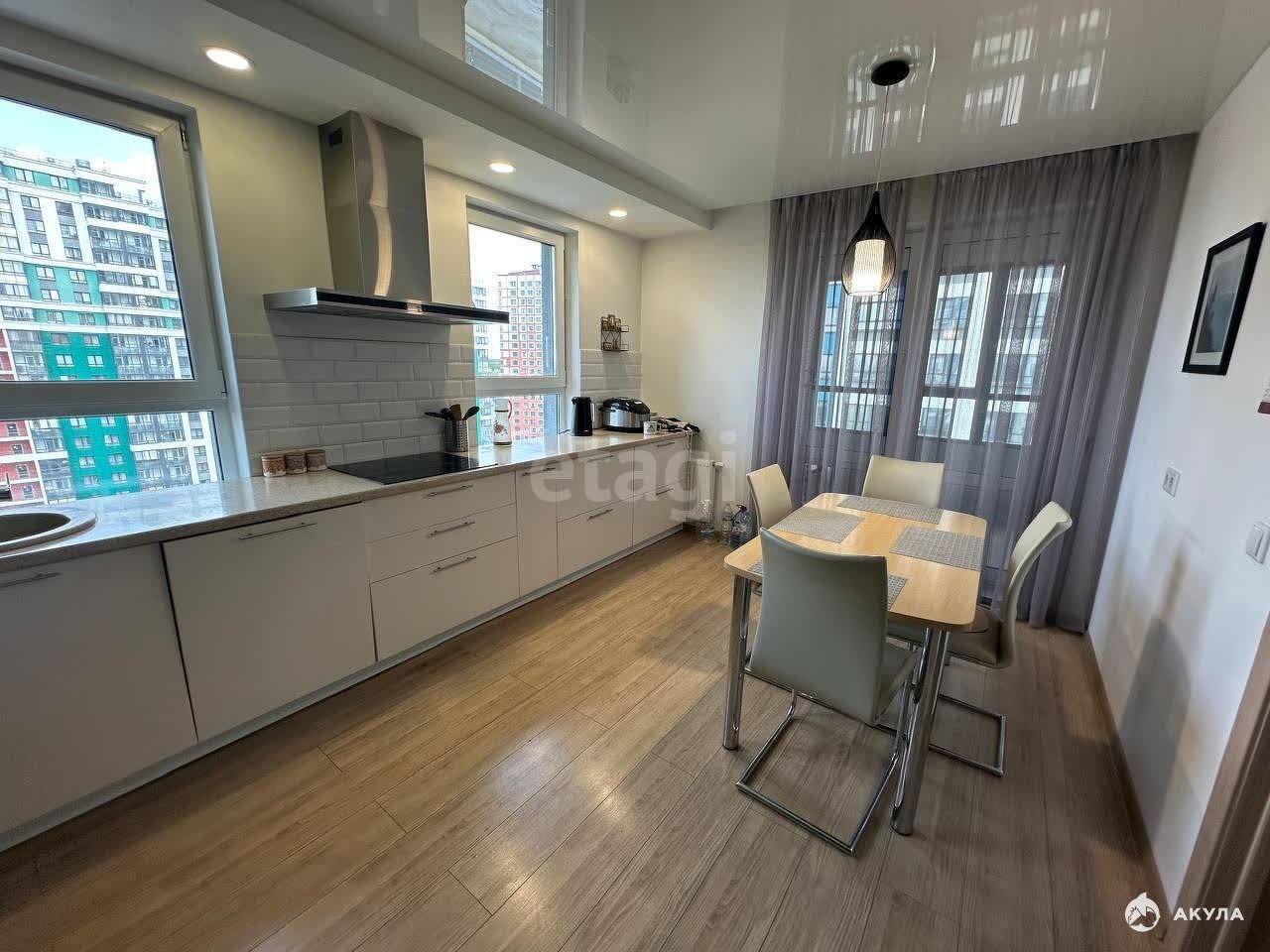 В квартире остается вся мебель, выполненная на заказ, кухонный гарнитур со столешницей из искусственного камня, дорогая техника: варочная поверхность, духовка, холодильник, обеденный стол со стульями, диван, кровать, светильники!