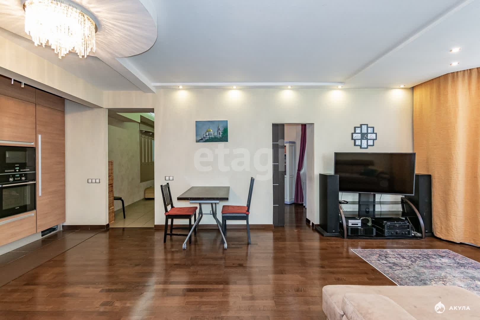Планировка функциональная - огромная кухня гостиная - 32 метра, три комнаты, из них 2 спальни с гардеробными, 2 балкона на разные стороны - идеальный вариант для большой семьи.