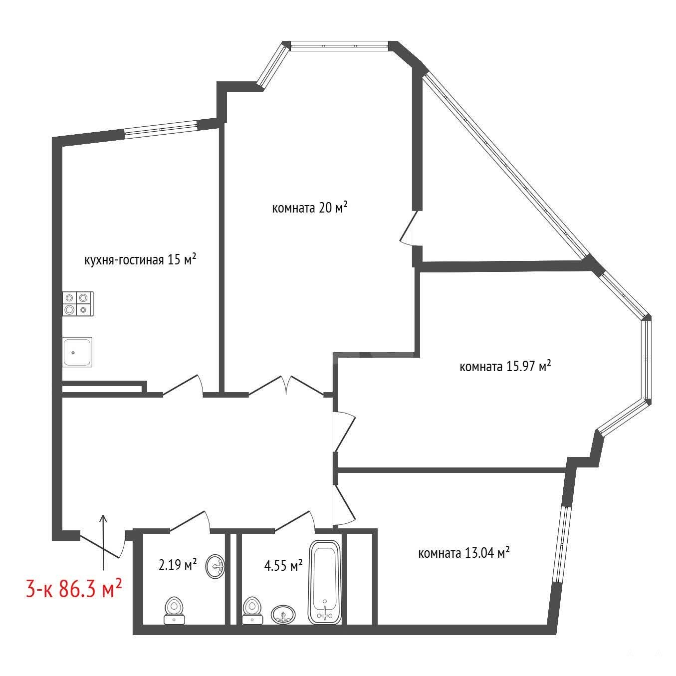 - 86 м²