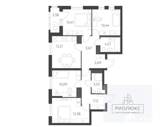 - 12.21 м²