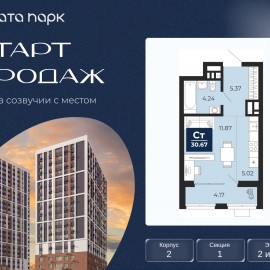 Успейте забронировать, пока действует скидка! Предложение ограничено! Стоимость квартиры указана со скидкой, ваша экономия составит 421, 890 RUB. Звоните, мы вам все подробно расскажем! 1-комн. квартира-студия с предчистовой отделкой в ЖК "Соната Парк" на 2 этаже. Общая площадь:...