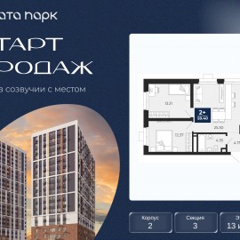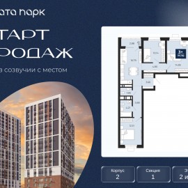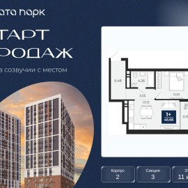 Торопитесь оформить бронирование по акционной цене! Предложение ограничено! Стоимость квартиры указана со скидкой, ваша экономия составит 773, 220 RUB. Звоните, мы вам все подробно расскажем! Просторная 2-комн. квартира с предчистовой отделкой в ЖК "Соната Парк" на 13 этаже....