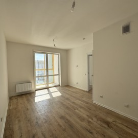 В продаже очень светлая однокомнатная квартира: кухня -гостиная 15, 4 кв.м., отдельная спальня 11 кв.м., просторная лоджия с панорамными окнами, выход на лоджию из кухни-гостиной, в коридоре ниша для шкафа.Новый , современный район, безопасный закрытый двор без машин,...