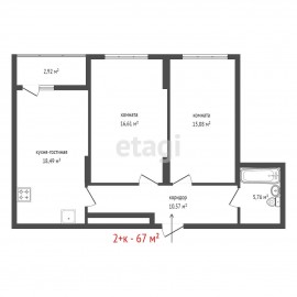 Объект № 195227. Продается квартира площадью 52.1 квадратных метра. Просторная кухня-гостиная с выходом на лоджию. Две изолированные комнаты. Инфраструктура комплекса: Современные интерьеры общественных зон. Озелененный внутренний двор. Комплекс NOVA Park отличается...