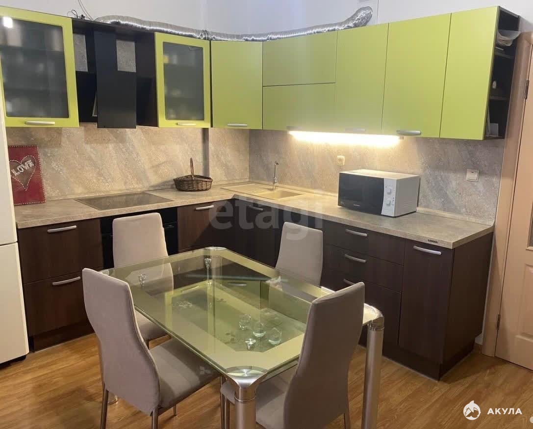 Объект полностью готов к въезду: в оформлении использована качественная кухня LORENA со встроенной техникой, включая посудомоечную машину, духовой шкаф, варочную панель и вытяжку, а также функциональный шкаф-купе в прихожей.