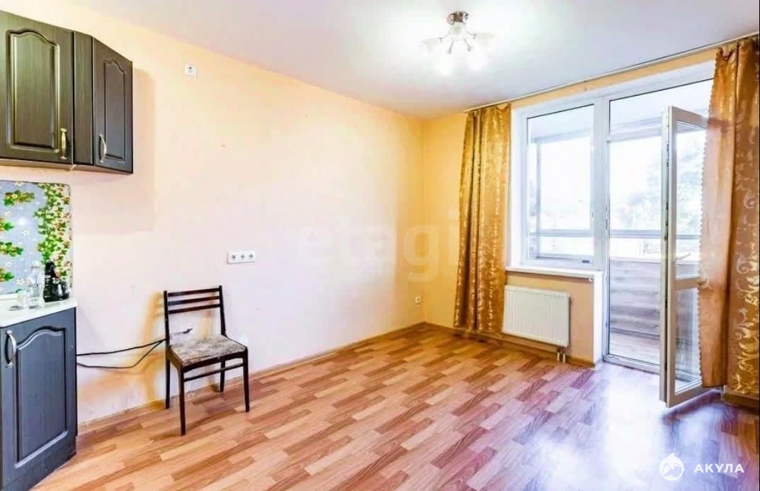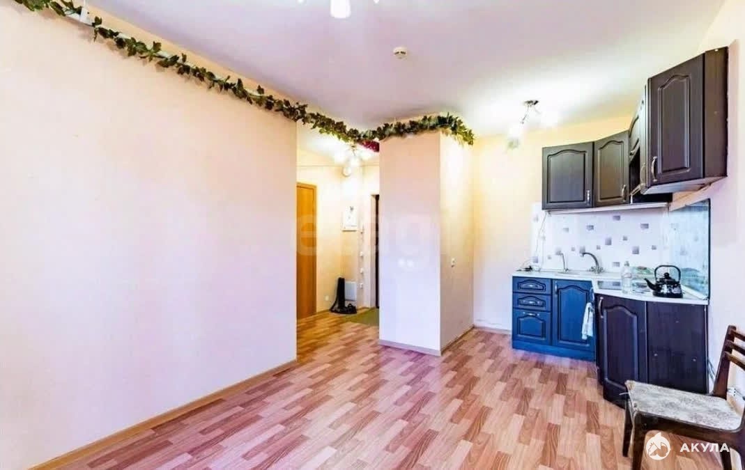 В квартире выполнен аккуратный косметический ремонт, готовый к заселению. Из полезной площади организована функциональная студия с выделенной кухонной зоней, где остаётся современный кухонный гарнитур и обеденный стол.
