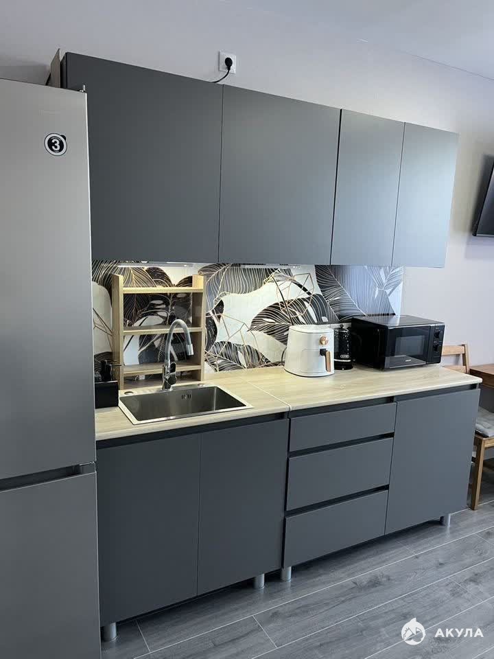 полностью оборудованная кухня (есть холодильник и стиральная машина)