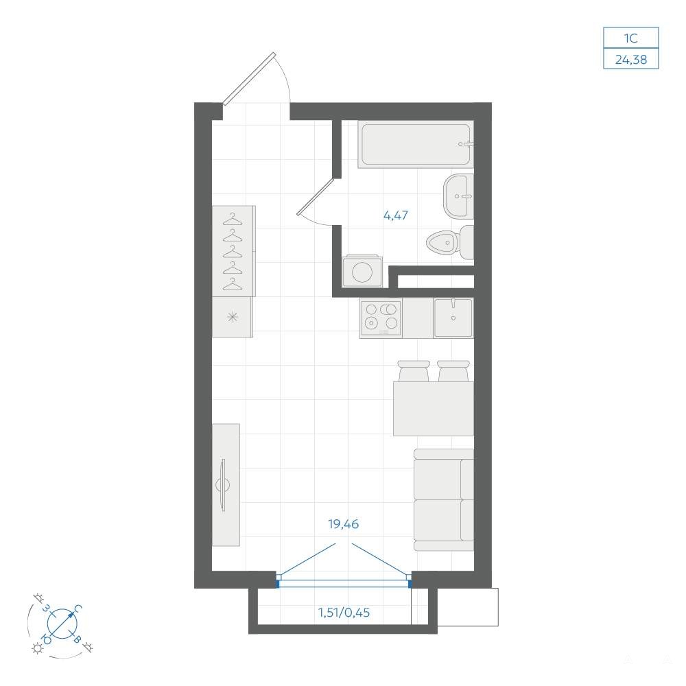 - 17.43 м²