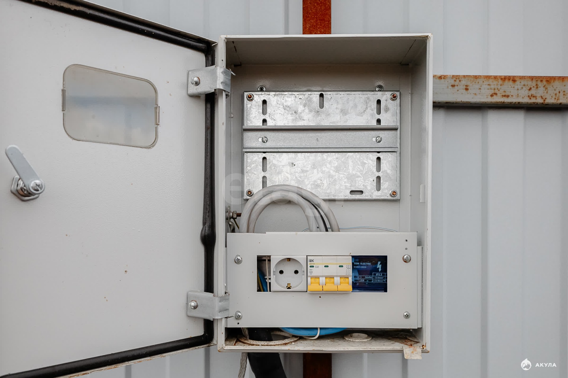 На участке проведено электричество, установлен счетчик, мощность 380 В, выполнена внутренняя разводка 220 В.