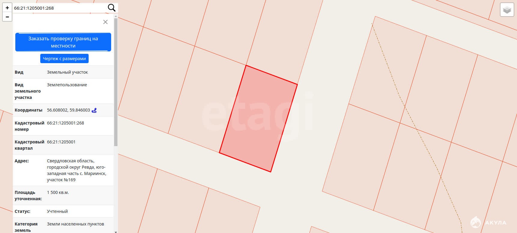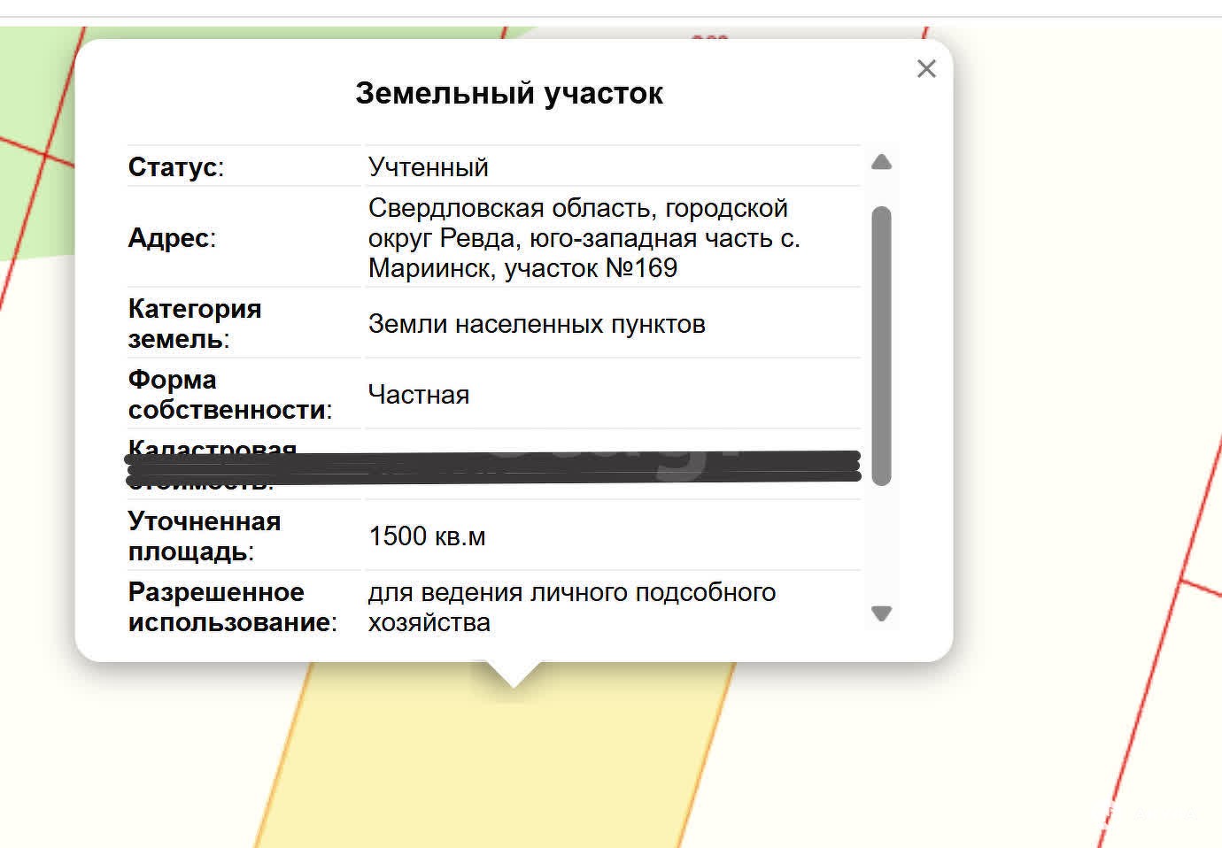 - Площадь участка