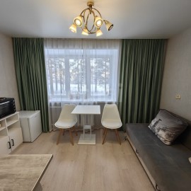 Аренда комнаты - Студии с новым уютным ремонтом! Очень уютная и теплая Студия! Все чисто и опрятно. Удобный 2 этаж и классный вид из окна на сосны! Полный комплект мебели и техники: - современная стиральная машина-автомат - холодильник - духовка с электрической...