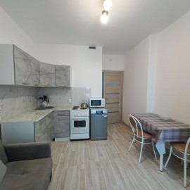 Сдается квартира-студия в ЖК Рассветный. Уютная, теплая, в хорошем состоянии, на длительный срок. Есть кухонный гарнитур, эл.плита, холодильник, вытяжка, чайник, стиральная машина, холодильник, диван, телевизор, стол, тумба, шкаф, прихожая. Балкон. Есть залог, но можем...