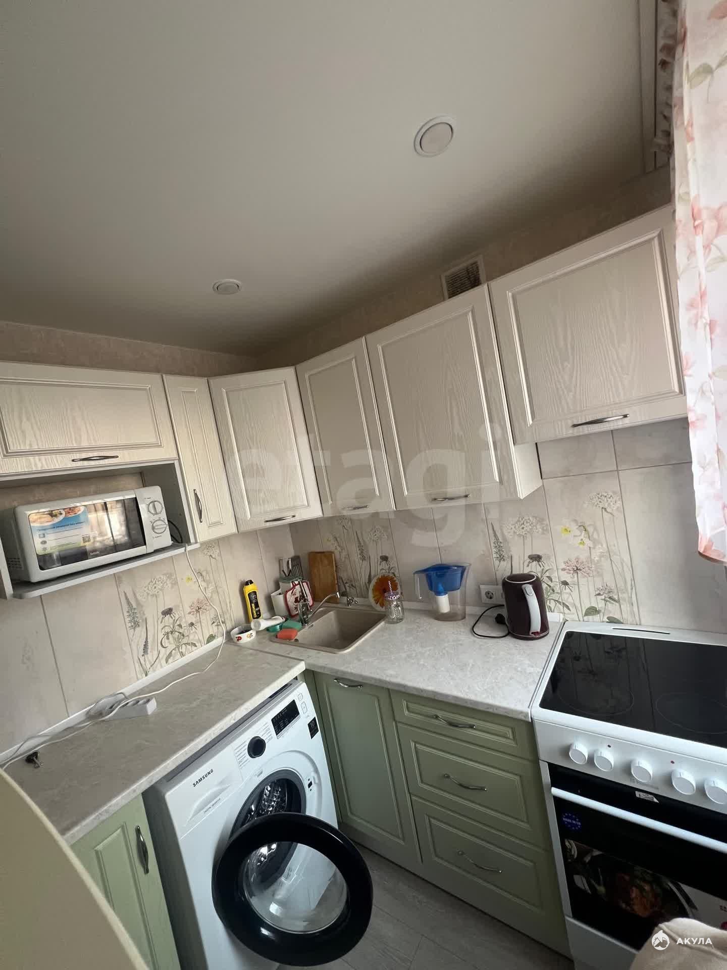 Кухонный гарнитур , Бытовая техника, СВЧ и телевизор, стиральная машина. Балкон застеклен.