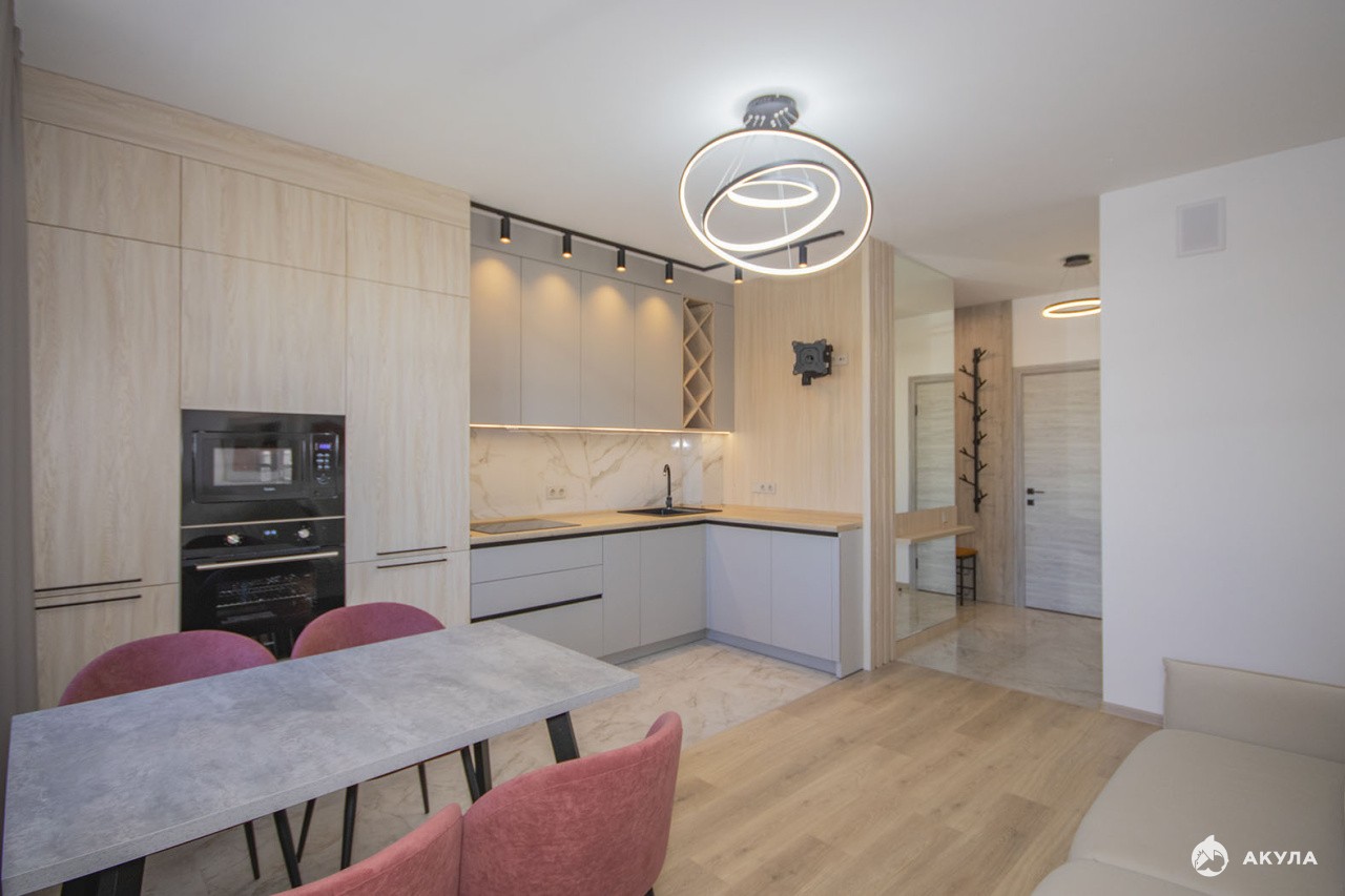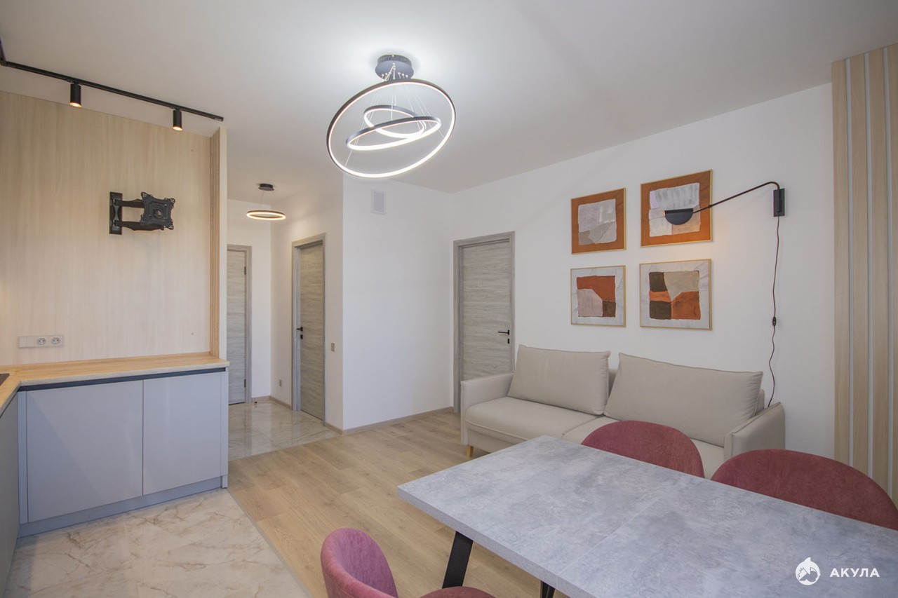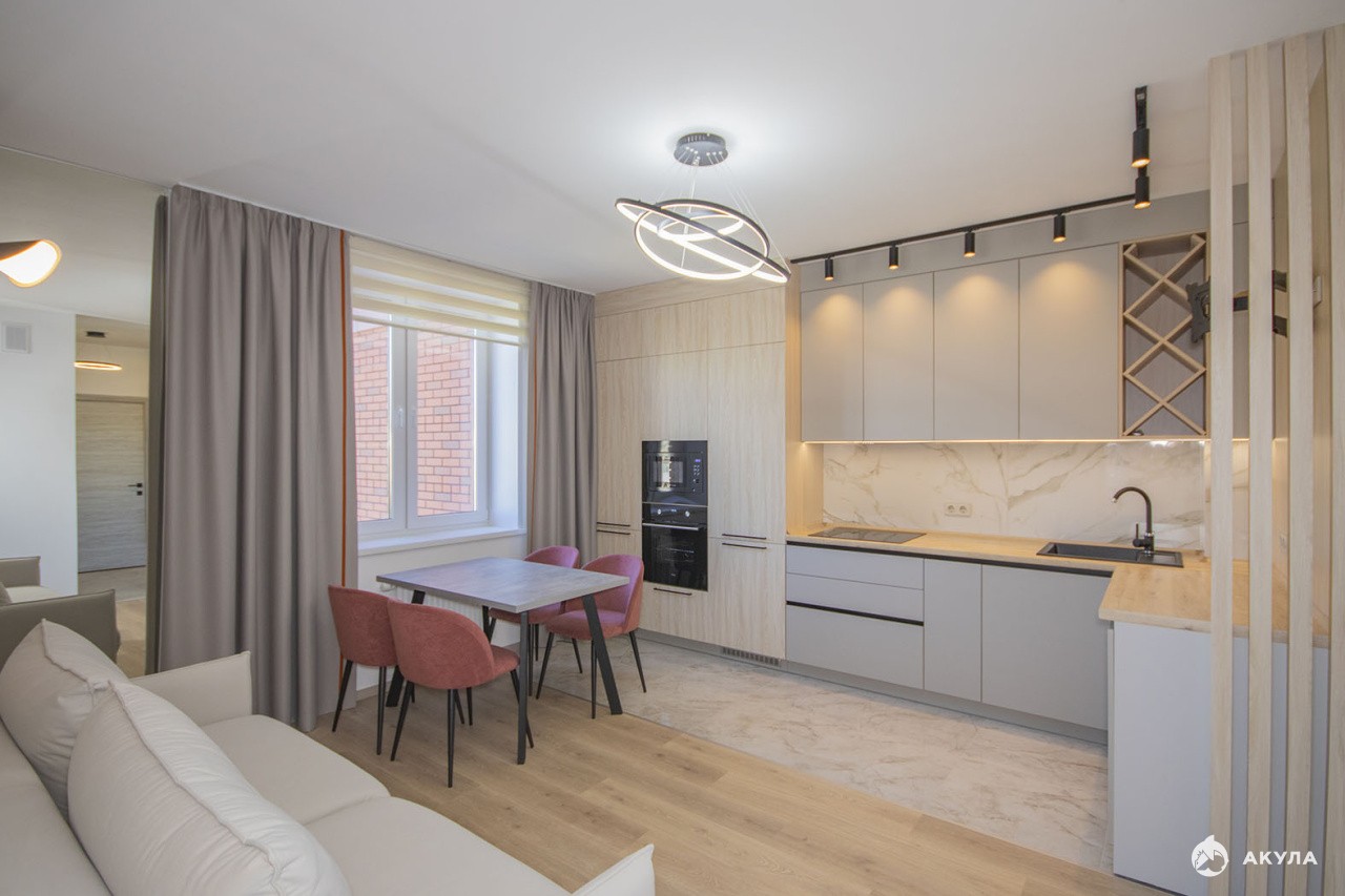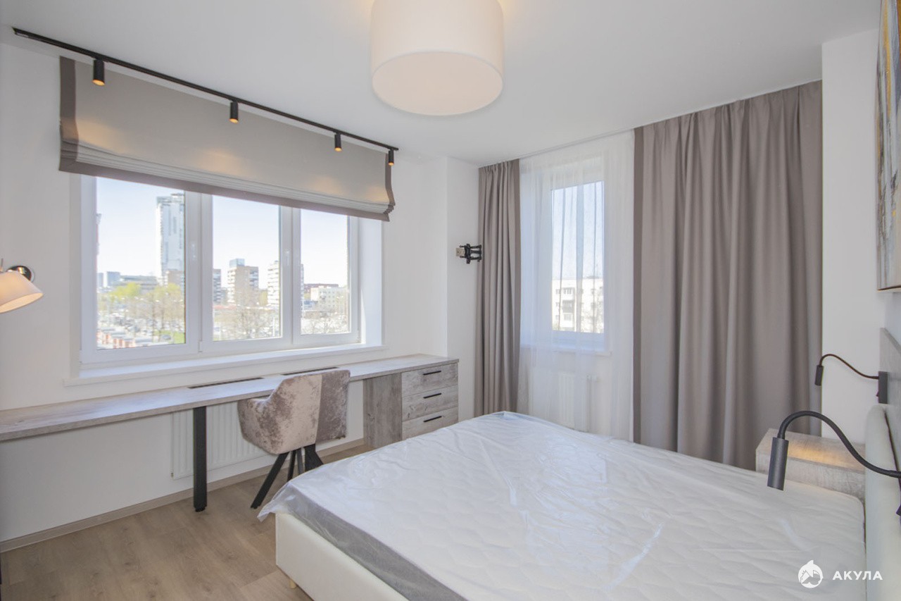 Идеальная квартира с индивидуальным современным интерьером, качественной отделкой, новой мебелью и техникой, включая сплит-систему. На кухне эргономичный кухонный гарнитур, варочная поверхность, посудомоечная машина, духовка, микроволновая печь, обеденный стол со стульями, раскладной диван. Уютная спальня с двуспальной кроватью, письменным столом, системой хранения. Комната с двуспальным раскладным диваном, пристенной мебелью и рабочим столом - идеально для детской. В прихожей вместительный шкаф, стильная вешалка и мягкий пуф. Совмещенный санузел с ванной, зеркало с подсветкой, шкафчики.В стоимость ежемесячной аренды входит пользование парковочным местом в подземном паркинге.