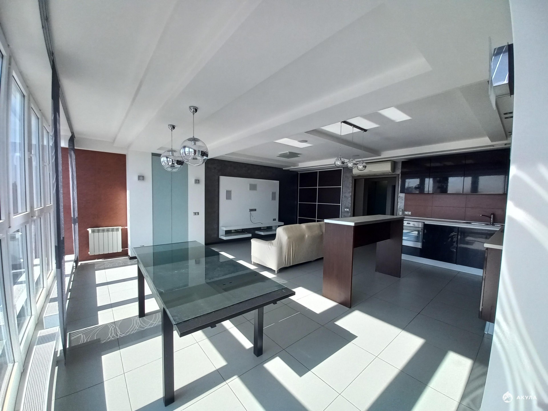 Техника: плита, посудомоечная машина, стиральная машина, бойлер, два кондиционера. По запросу холодильник, микроволновая печь, чайник, шторы.