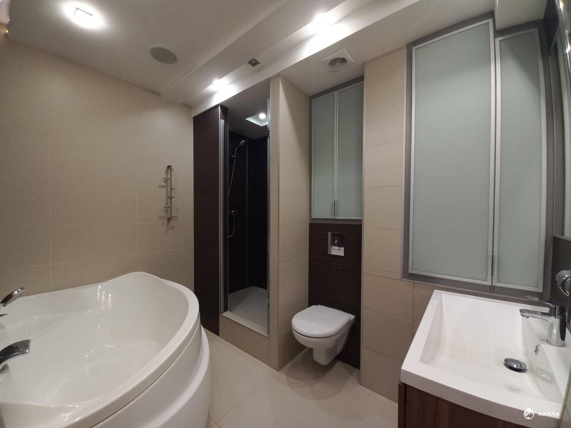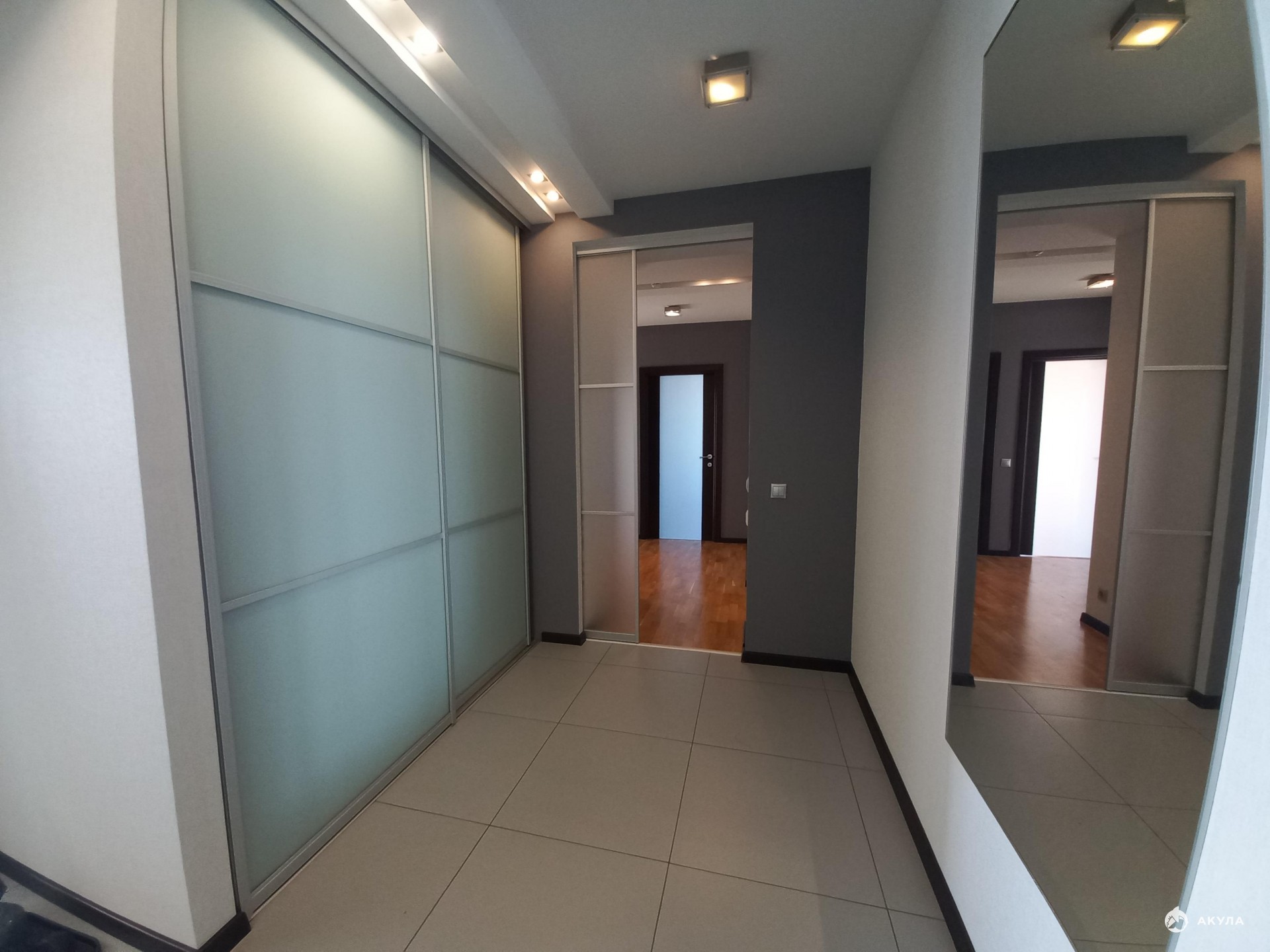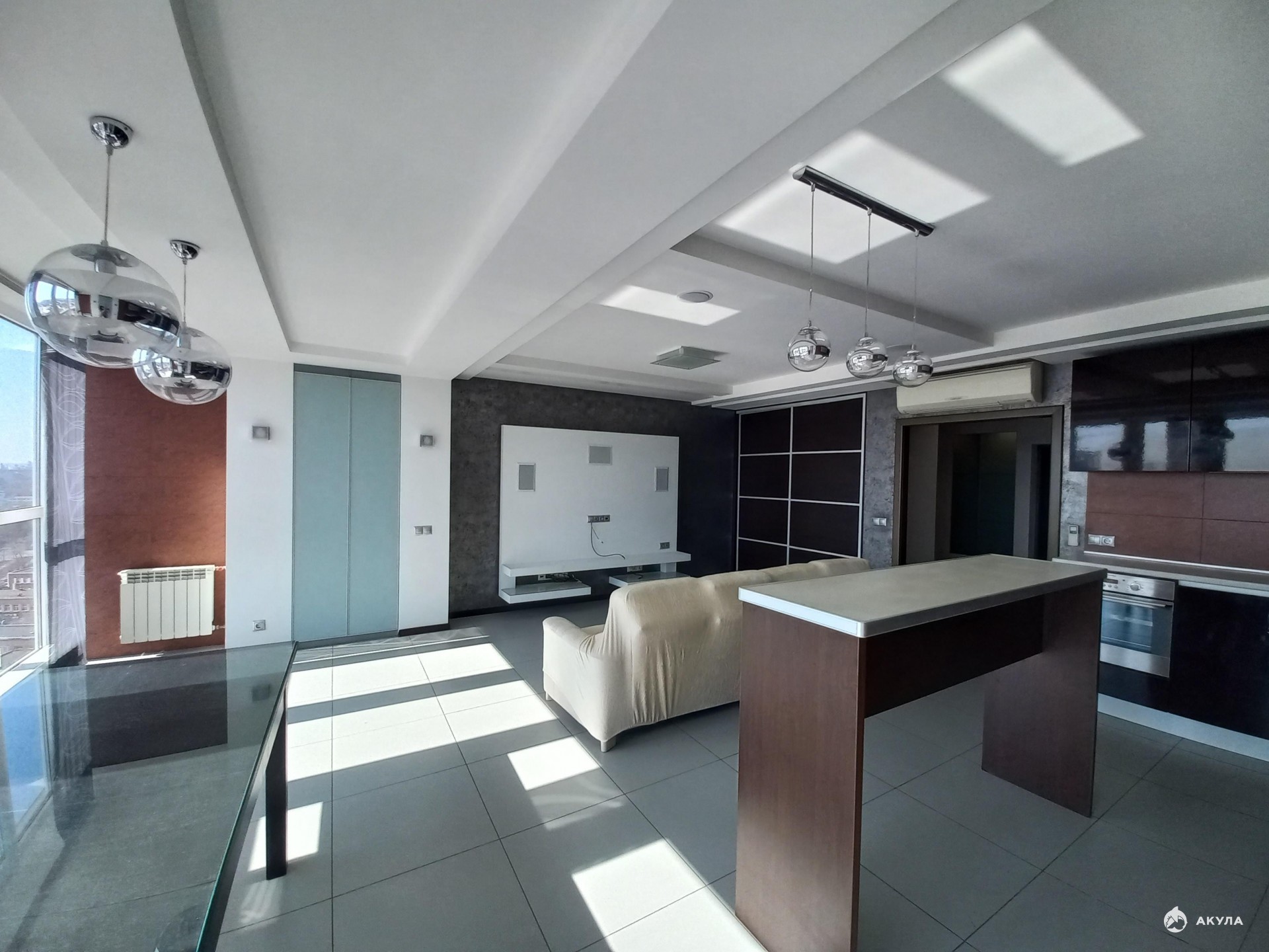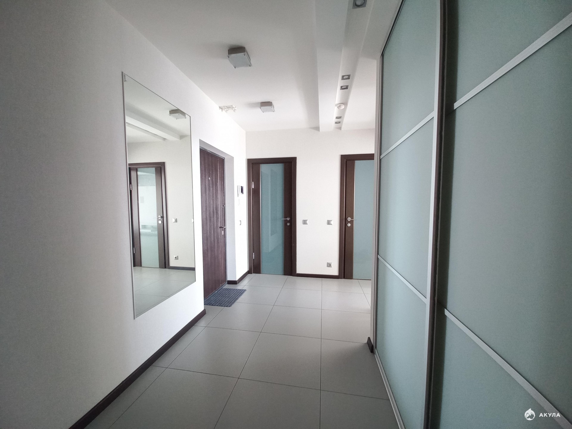 Теплые полы, видео домофон. С помощью освещения грамотно зонировано все помещение.