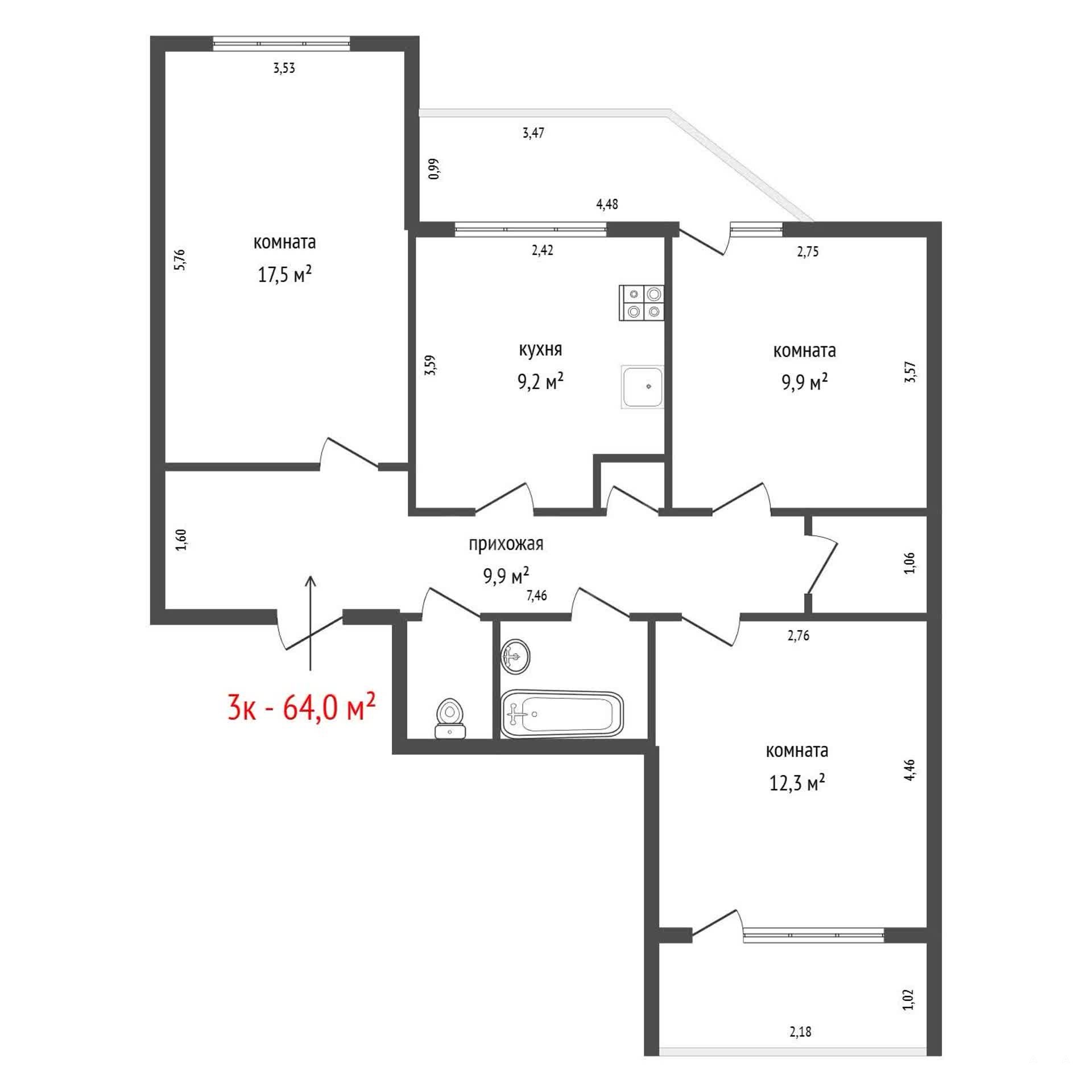 - 64 м²