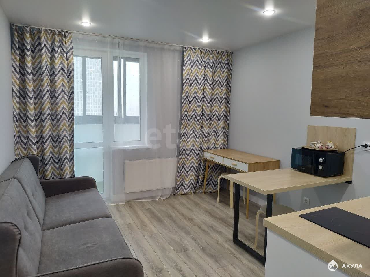 Сдается уютная квартира-студия с мебелью и техникой в доме комфорт класса. В квартире современный свежтй ремонт. Дом с закрытой придомовой территорией, где есть современная детская площадка. В шаговой доступности находятся: ТРЦ Радуга парк, различные магазины, детский сад №348, остановки общественного транспорта. Хорошие соседи, чистота в подъезде. Стоимость аренды в месяц 30000 руб.+ оплата коммунальных услуг, страховой депозит 15000 руб.