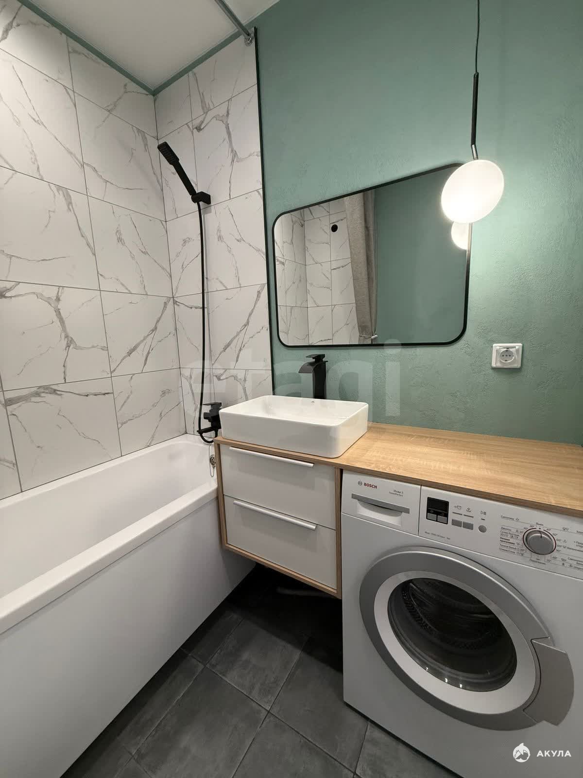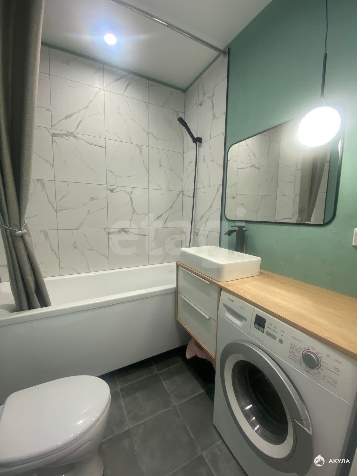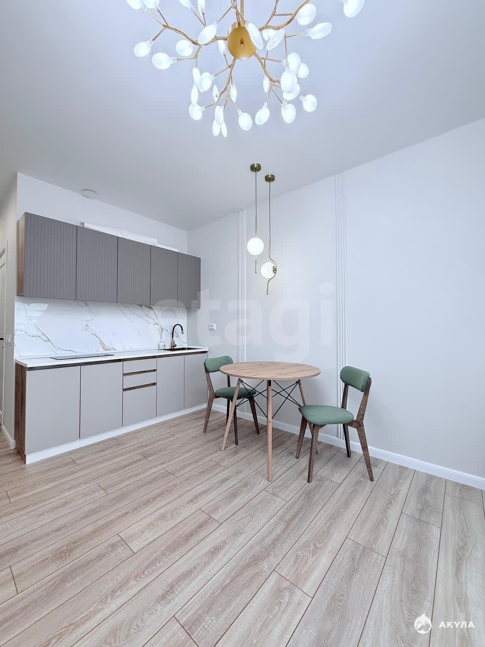 В квартире есть всё необходимое для комфортного проживания: установлен кухонный гарнитур с электрической варочной поверхностью, обеденный стол со стульями, раскладной диван, стиральная машина, холодильник. Можем докупить микроволновую печь по необходимости.