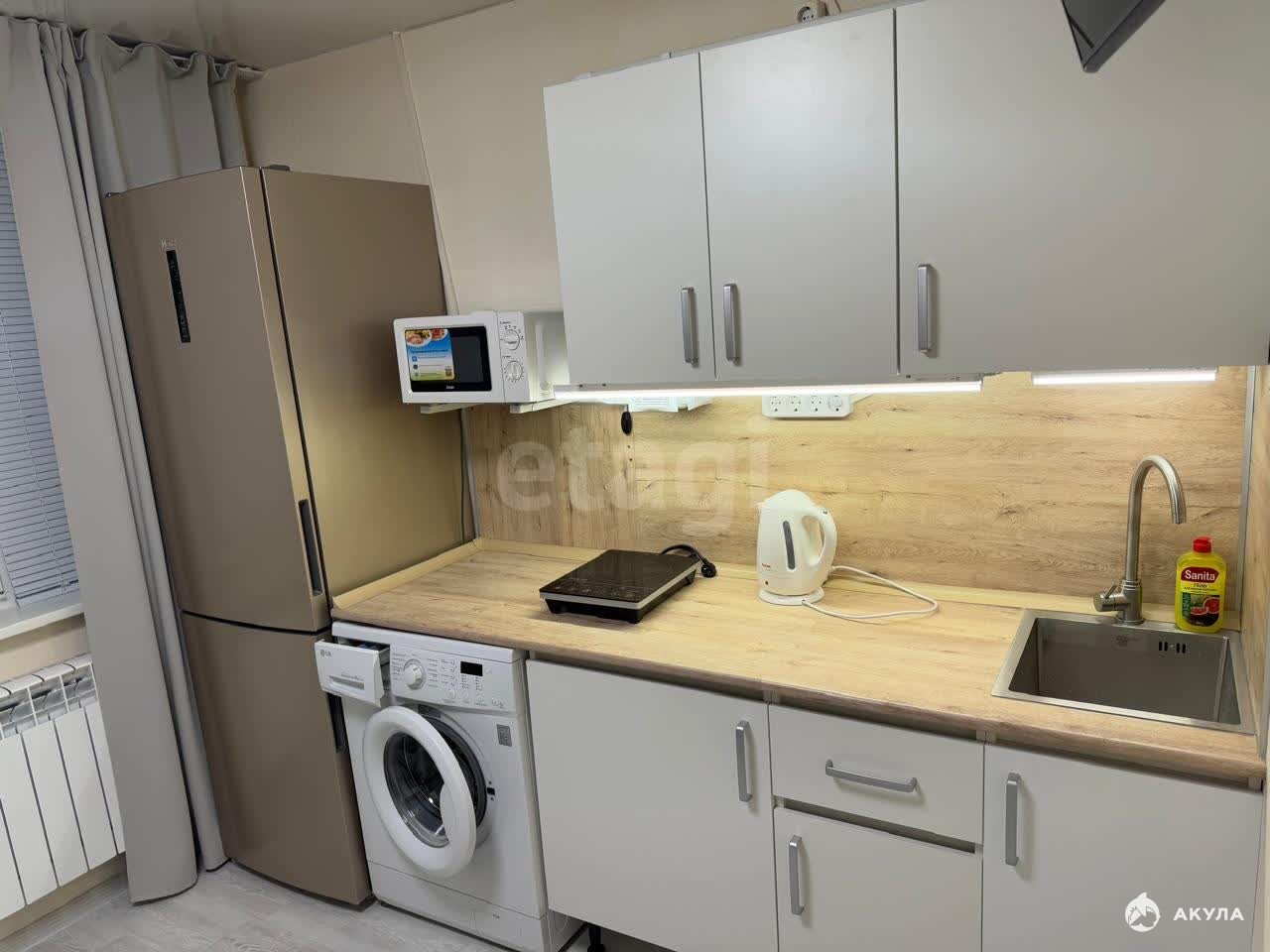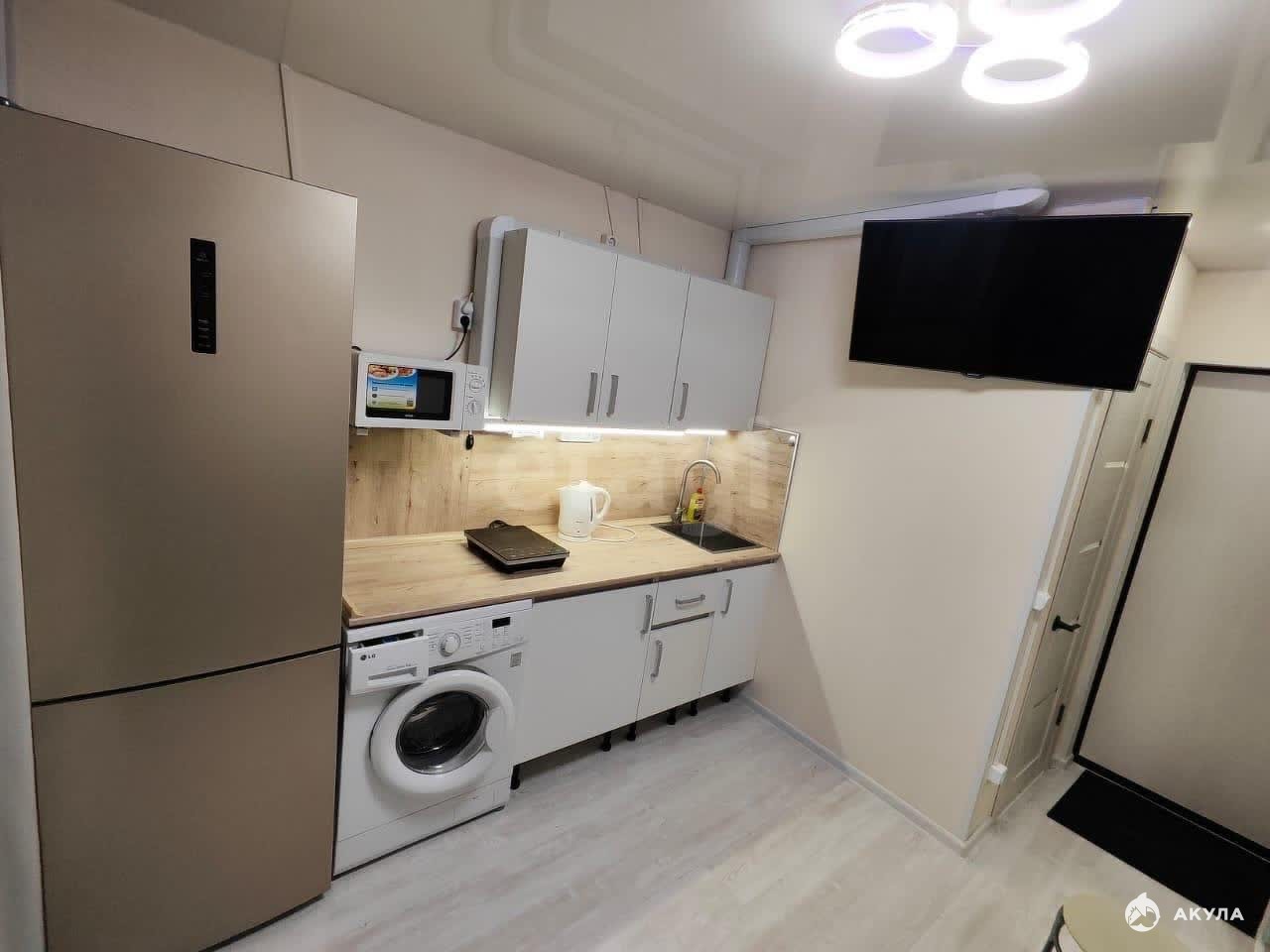В квартире есть всё необходимое для проживания: стиральная машина, холодильник, вытяжка на кухонном гарнитуре, микроволновая печь, инфракрасная плита, тёплый пол, закрытый двор, в студии сделан свежий капитальный ремонт ( ещё никто не жил).