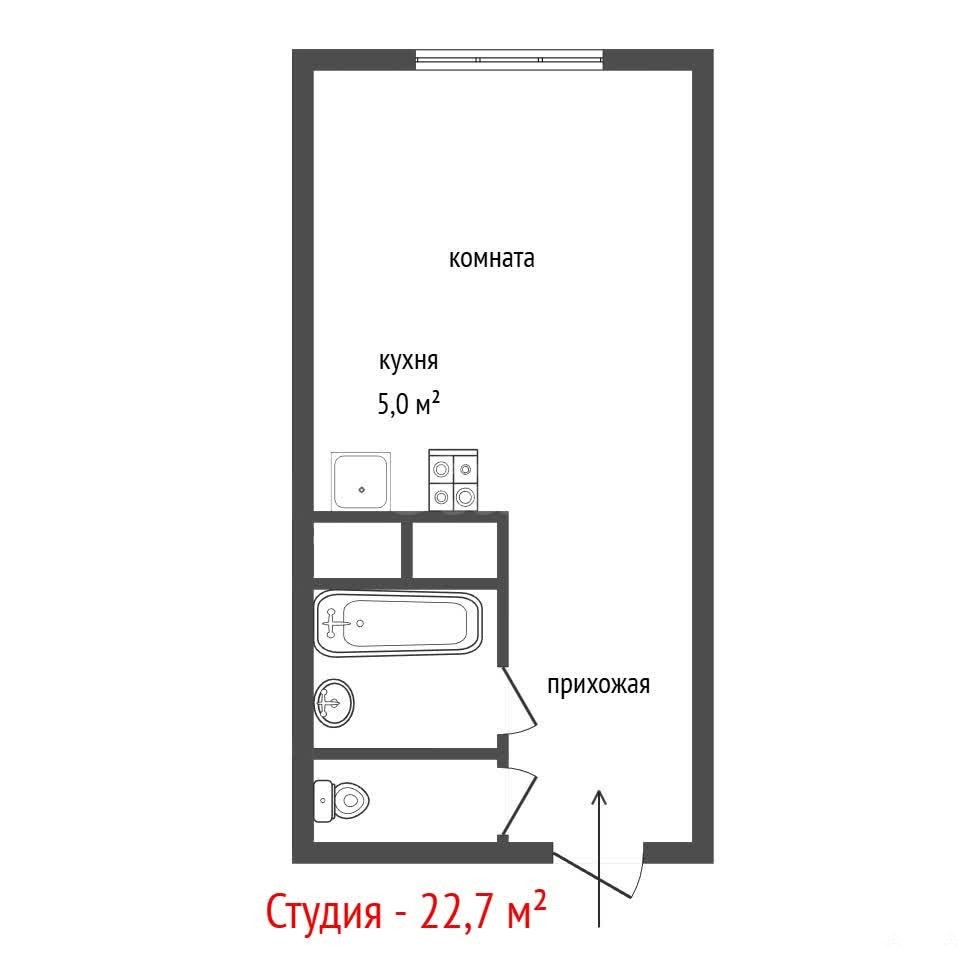 Площадь - 22, 7 кв.м. Косметический ремонт от застройщика.
