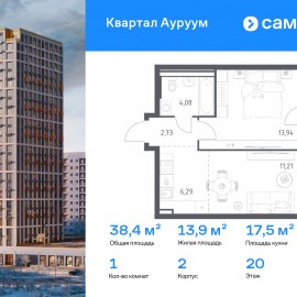 Строим кварталы для жизни с заботой о будущем. Предлагается 1-комнатная квартира бизнес-класса 38, 4 кв.м в корпусе 2 на 20 этаже, в ЖК «Квартал Ауруум» Квартира с предчистовой отделкой. Доступность дополнительных опций уточняйте у застройщика. Приобрести квартиру возможно по...