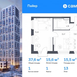 Строим кварталы для жизни с заботой о будущем. Предлагается 1-комнатная квартира комфорт-класса 37, 64 кв.м в корпусе 1 на 13 этаже, в ЖК «Пайер» Квартира с предчистовой отделкой. Доступность дополнительных опций уточняйте у застройщика. Приобрести квартиру возможно по...
