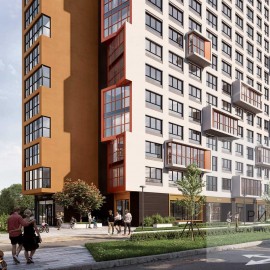 Флагманский дом большого современного жилого квартала "Олимпика" с просторными парадными и мягкими зонами ожидания, скоростными лифтами, сквозными выходами на улицу и в большой благоустроенный двор, удобным подземным паркингом и общественной автопарковкой, торговыми...