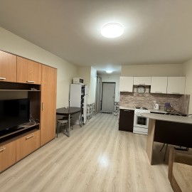 Сдаем уютную и очень светлую студию на 12 этаже нового дома.В зоне кухни: кухонный гарнитур с электрической варочной поверхностью, духовым шкафом, СВЧ, холодильником, обеденной зоной.Очень удобный выход из кухни на вместительную застекленную лоджию.В квартире есть...