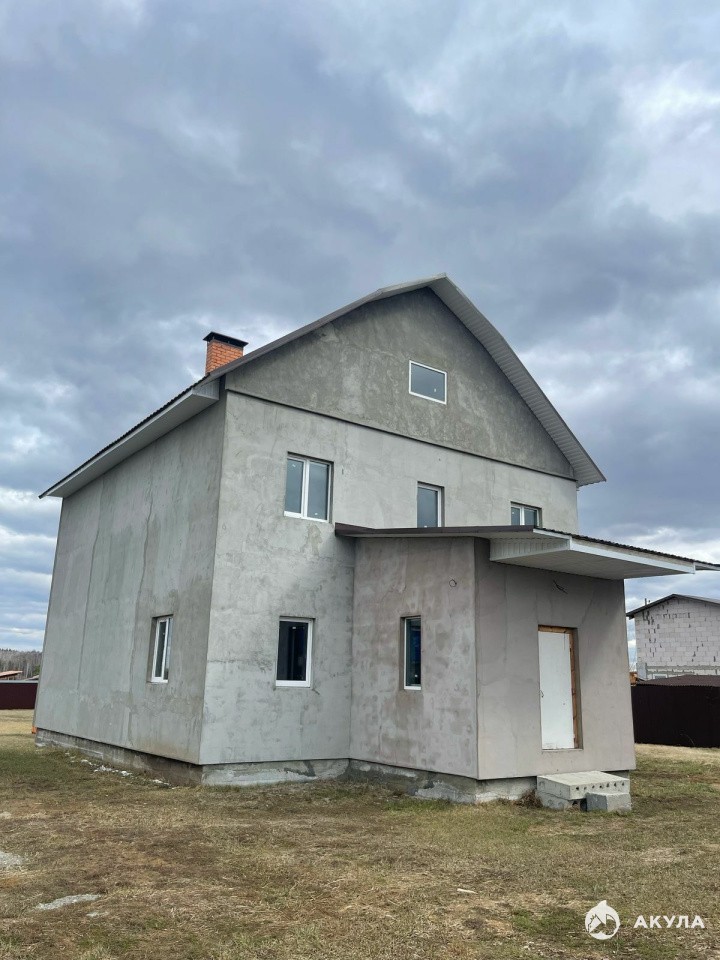 Прекрасная идея семейного 2-этажного загородного дома 210 кв.м. Дом построен и под крышей простоял две зимы! Строили для себя из качественных новых строительных материалов. Фундамент монолит, ж/б перекрытия по госту 1 и 2 этажа, снаружи утеплитель 100мм. Фасад заштукатурен, требует финишной штукатурки и покраски. До участка проведен газ. Электричество в дом заведено, разводка по потолку. Водоснабжение центральное. Раздельные с/у на 1 и 2 этажах готовы под плитку. Канализация в дом заведена. Высота потолков в черновом варианте 3, 1м. На 1-этаже гостевая комната, кухня и гостиная. На втором- три просторные спальни.