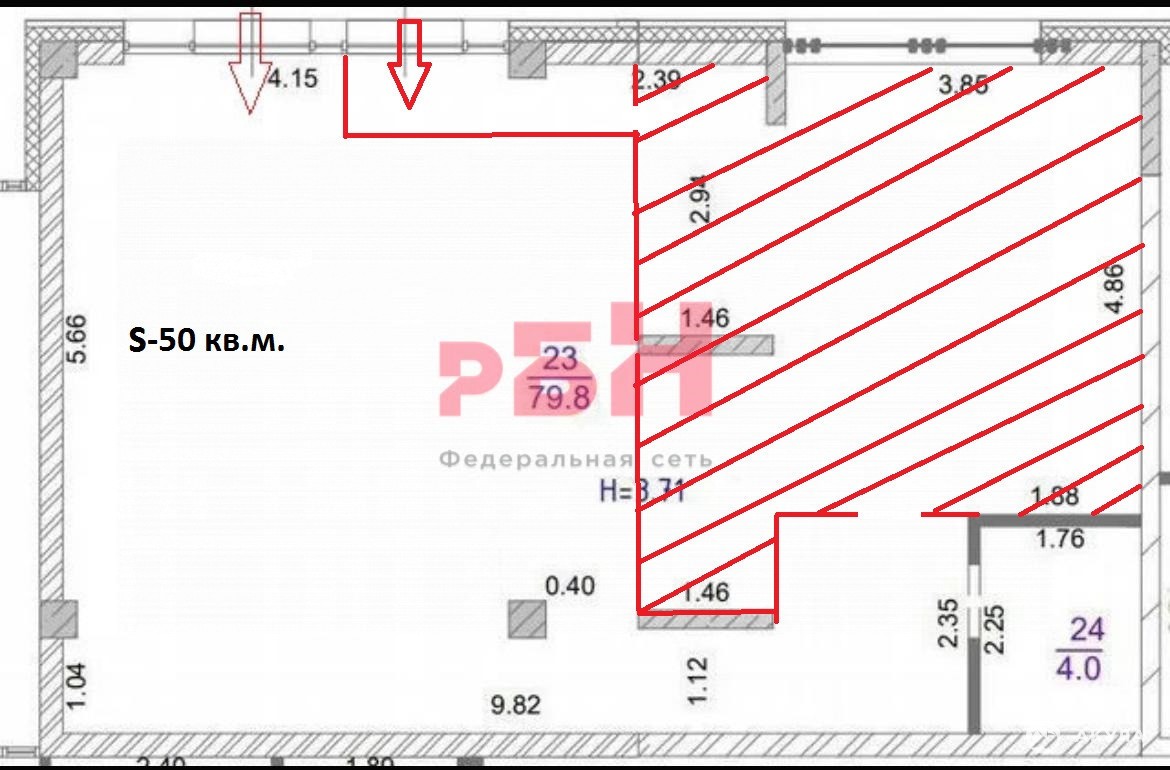 -Oбщая пл. помещения 50 кв.м.,