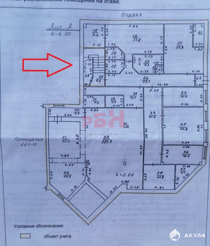 -находится в подвале административного 3х этажного здания;