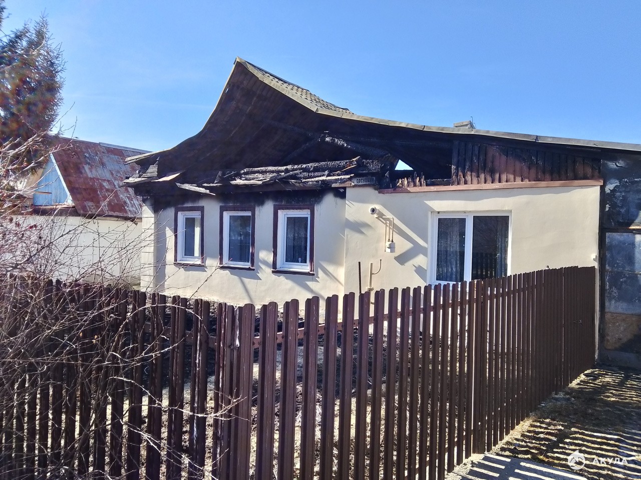 Одноэтажный дом с подведёнными коммуникациями: газ, электричество и вода. Крыша пострадала от пожара — есть два варианта: реконструировать или снести и построить новый дом мечты.