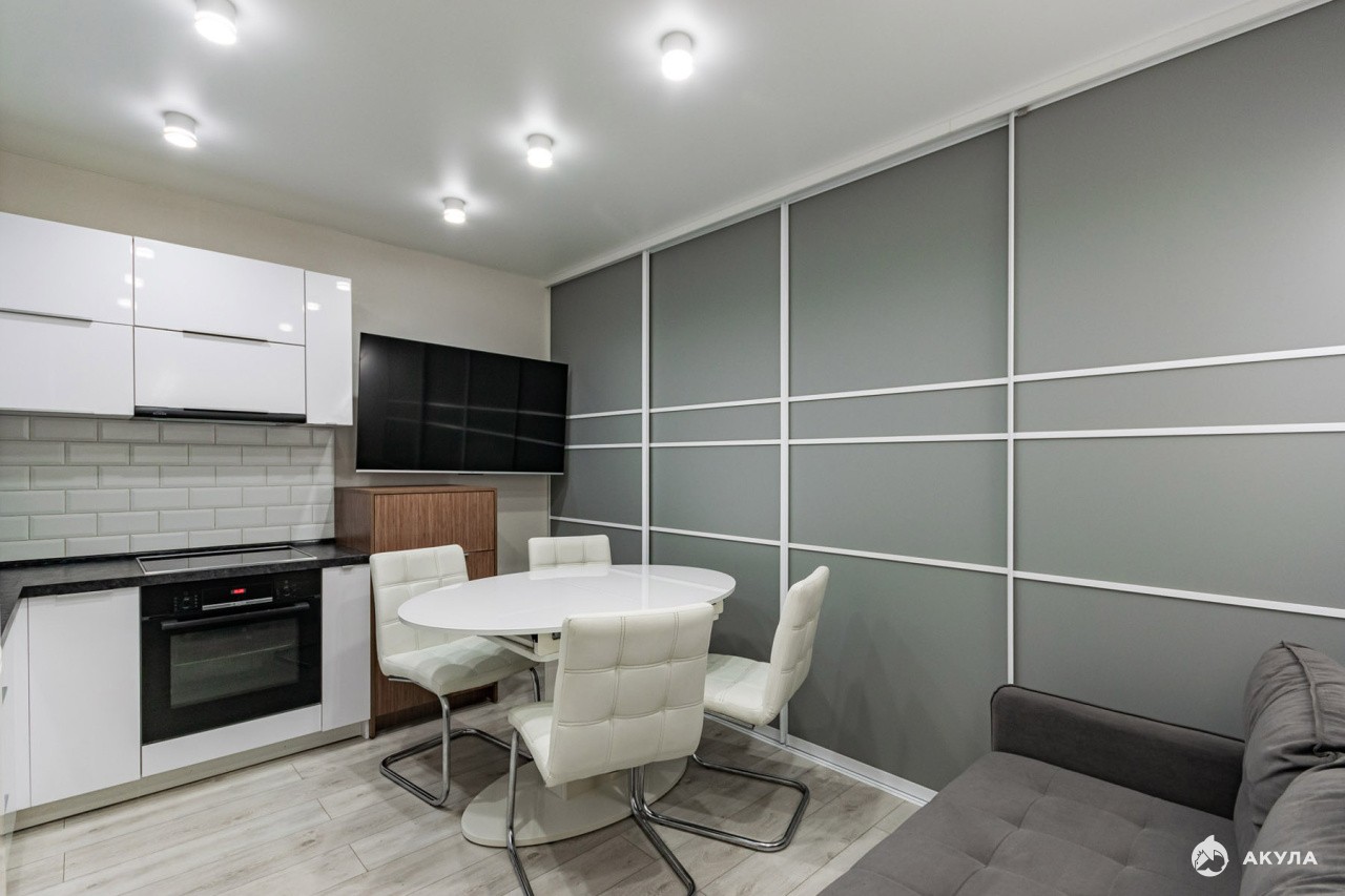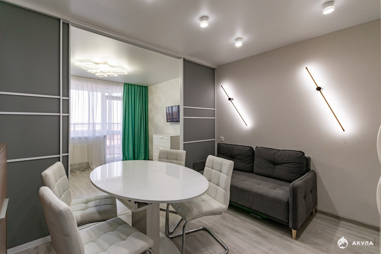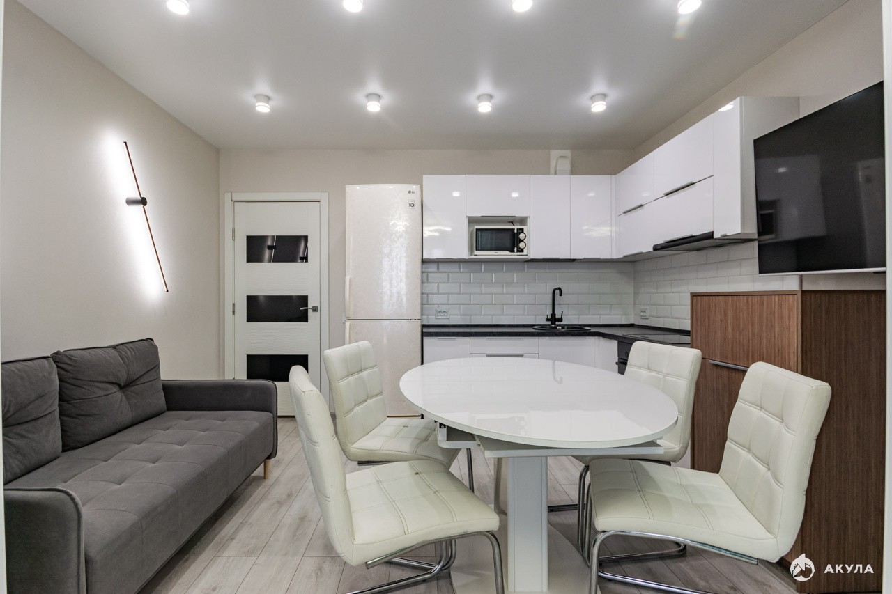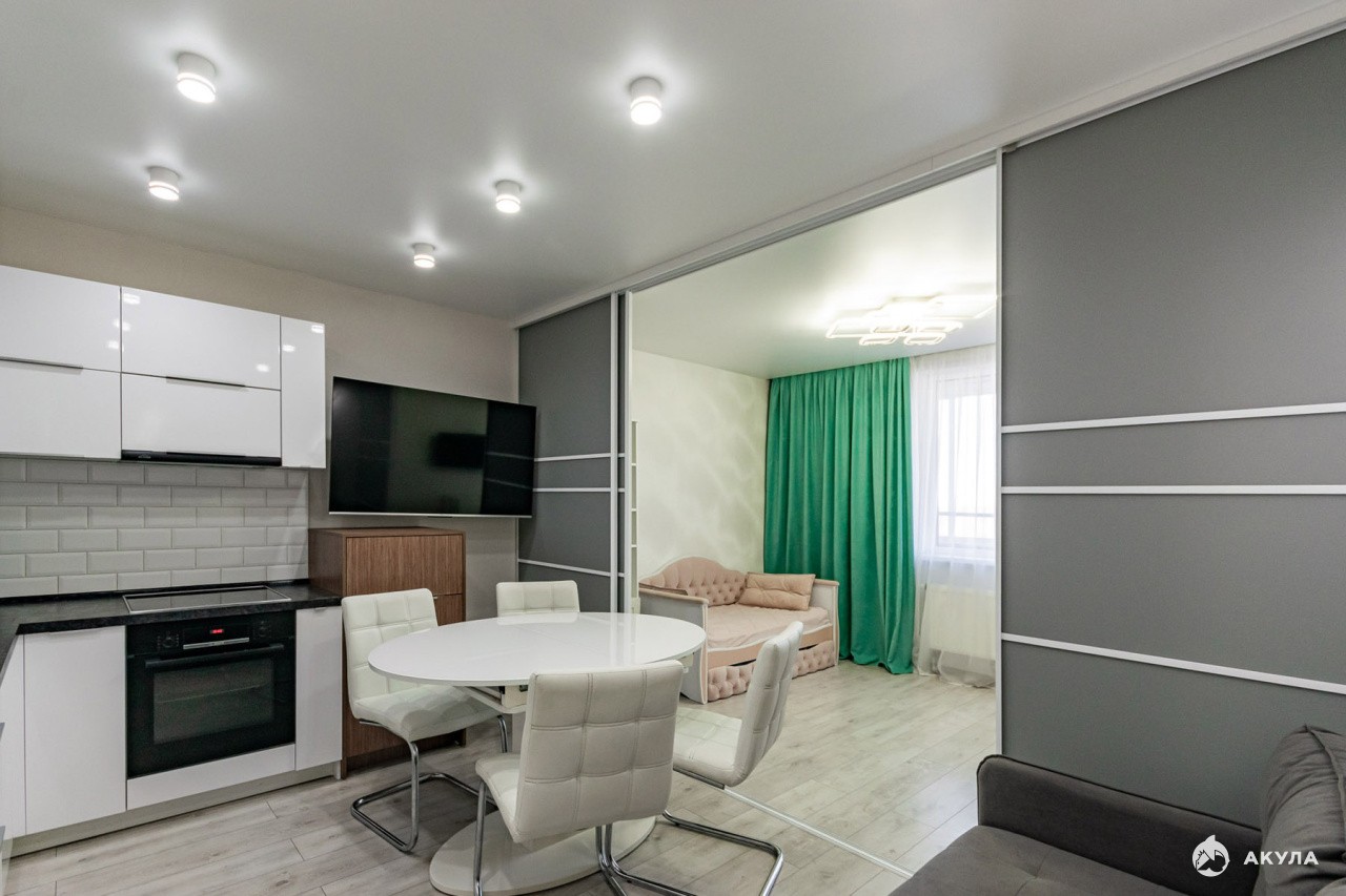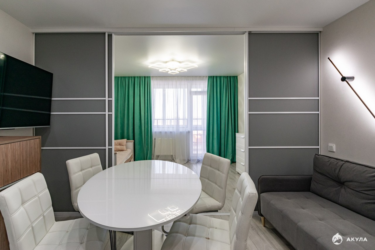 Продам уютную, красивую евродвушку в ЖК "Петровский"с ремонтом, кухонным гарнитуром и гардеробной!Большая кухня-гостинная разделена раздвижными панелями и при желании можно выделить отдельную комнату, например, для детей. Ремонт во всей квартире выполнен качественными материалами в светлых тонах и послужит вам еще долго, можно заехать и жить! Квартира находится на комфортном 9 этаже с видом на 25 школу-лицей, где будут учиться ваши дети. Детские садики в большом количестве так же находятся в шаговой доступности от дома.Дом 2019 года, спецпроект комфорт класса. Закрытый двор и видеонаблюдение - для вашей безопасности, есть детские игровые площадки, всегда можно найти парковочное место во дворе и рядом с домом. Своя газовая котельная позволяет снижать расходы на коммунальные услуги и нет проблем с горячей водой. На 1 этаже есть несколько продуктовых магазинов, кабинеты разных услуг (парикмахерская, стоматология и др), студии для развития детей и взрослых, в 5 минутах - ТЦ Кировский, рядом с домом остановка общественного транспорта, до метро 25 минут на автобусе. По В.Пышме тоже ходят автобусы и можно быстро доехать до центра города или за 20 минут дойти пешком. В выходные можно погулять в красивом Манин парке, до которого идти 10 минут. Там есть велодорожки, тропы для лыжников, аттракционы и спортивные тренажеры для детей и взрослых. Парк новый, благоустроенный, входит в 5ку самых популярных мест города! Собственник квартиры один с момента постройки дома по договору долевого участия. Продажа квартиры в связи с переездом в другой город, освободим сразу после получения полного расчета. Покажем в любое время до 21ч .