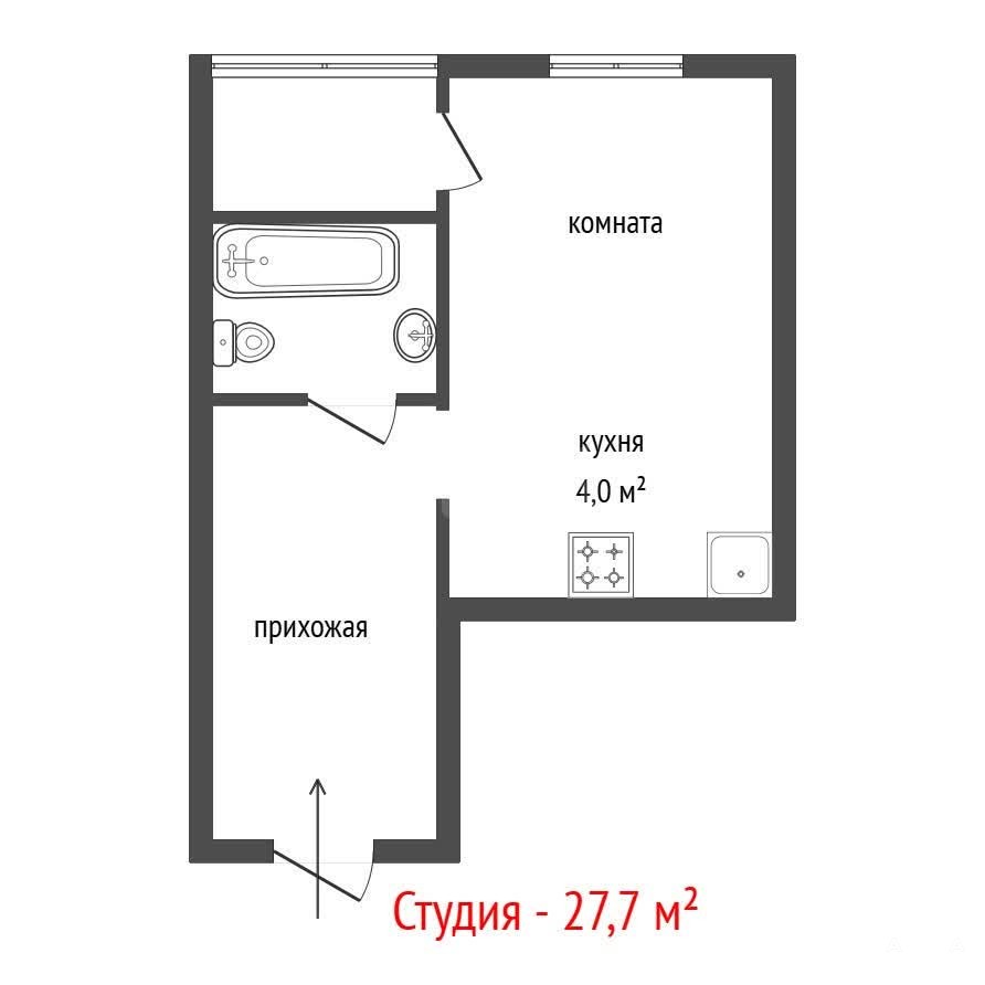 Просторная студия 27.7 м² с жилой зоной 18.5 м² и высокими потолками 2.7 м — ощущение свободы и света!