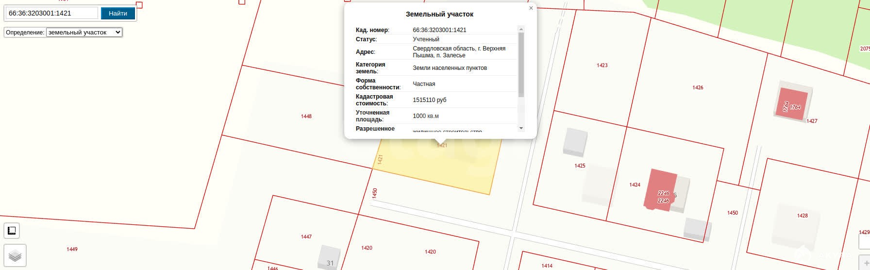 - Площадь участка