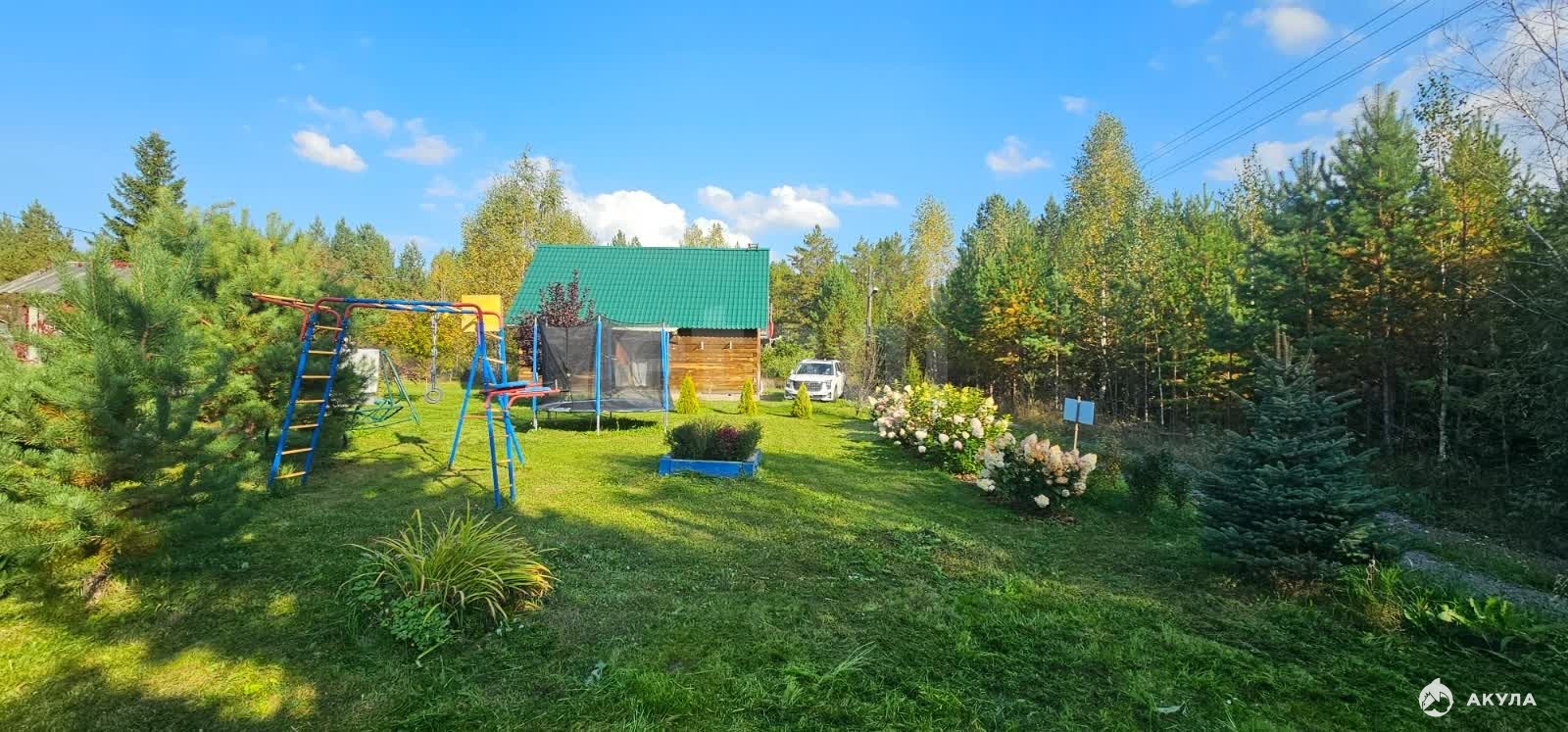 с лесом, 14 соток! есть всё и для всех! для детей большая детская площадка, со своим детским домиком на участке, для взрослых и постарше. Для старшего поколения две теплицы, грядки, кустарники. Для женской половины декоративные деревья, цветники и конечно же Дом, три комнаты, одна кухня гостинная, одна детская и одна для гостей. а также для гостей если вдруг нагрянут есть еще два вагончика, которые служат как летняя веранда и как гостевой дом.Главное место много, вокруг соседей мало их не слышнолес, пение птиц, и звезды на небе!Приезжайте! Живите!